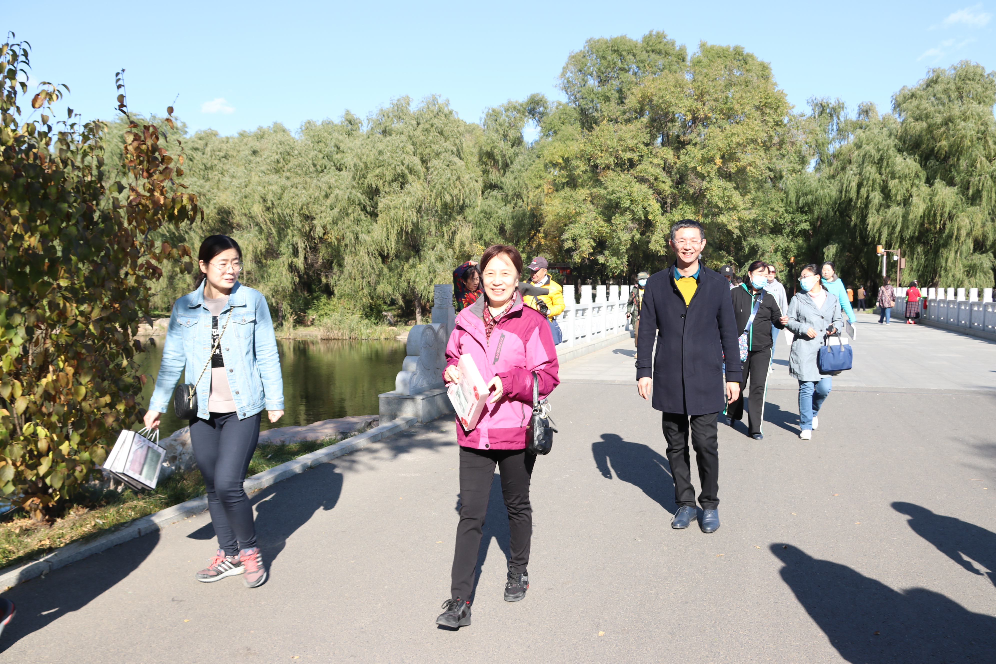 The hike, which lasted more than one hour, began at the Changchun Liberation Memorial site in South Lake Park, and was met with the active participation of the faculties. Laughter and spirited discussions could be heard along the trek, as the faculties immersed themselves in the charm of the changing seasons, and unwound from the stress of work. The sky was clear and the sunlight bright, ripples stirred across the lake, and leaves of yellow and crimson swirled in the wind. The more energetic lots paced briskly, while others were in no hurry. In the relaxed hour or so, the teachers fully took in the beauty of Northern China’s winter.