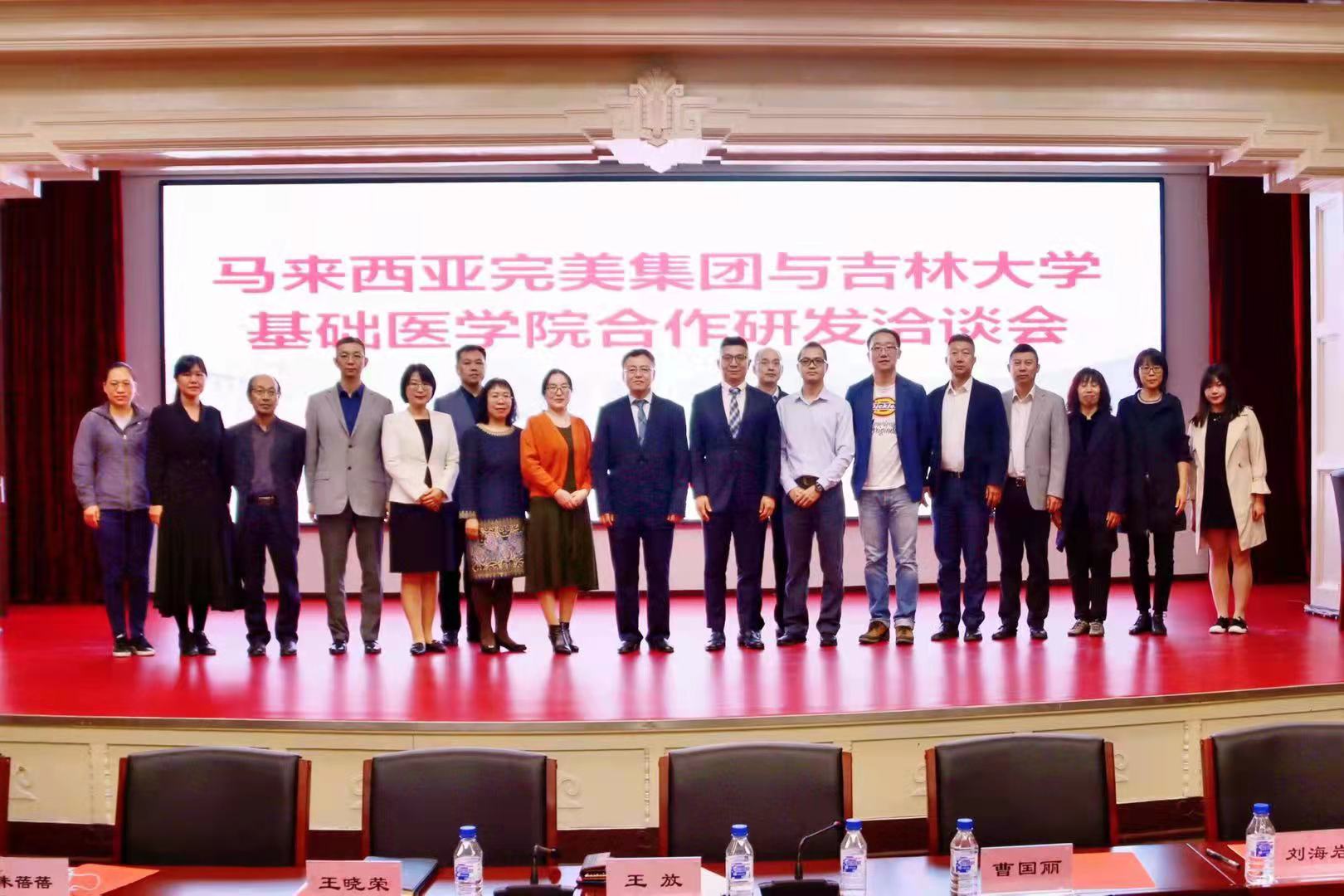 In order to further promote the integrated development of industry, education, research and application, on September 24, 2021, the College of Basic Medical Sciences, Jilin University (JLU) held a meeting with Malaysian Perfect Group. Li Jianhua, Deputy Director of the Foreign Affairs Office of Jilin Province, Wang Xiaolin, Deputy Head of the Office, Li Guanghe, head of “QIAOMENGYUAN” (innovative and entrepreneurial cluster for overseas Chinese), United Front Work Department of Jilin Provincial CPC Committee, Zhu Beibei, Deputy Director of Jilin University Office of Global Engagement attended the meeting. All leaders of the College of Basic Medical Sciences and the heads of technological R&D departments of the college also participated. The meeting was presided over by Dean Wang Fang.