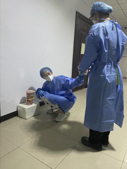 “不忘初心,牢记党的教诲。当对党许下诺言的那一刻,我们便时刻做好准备,为党和人民奉献出一切。”战“疫”打响的第一刻,研究第一党支部全体党员积极响应,主动参与到志愿服务活动中。每天早上不到七点,各位党员同学们早已准时起床,严格按疫情防控要求,穿戴防护服、手套及N95口罩,开展跨楼层以及楼层内的志愿服务活动。全体同学们保持着高度的自觉性,听从指挥统一活动,短短30分钟,40多箱水,277份餐食,277份试剂盒、口罩都已按序发放。大家每次忙完已是满头大汗,弯着腰调整呼吸,却未曾听谁喊过一声苦叫过一声累。