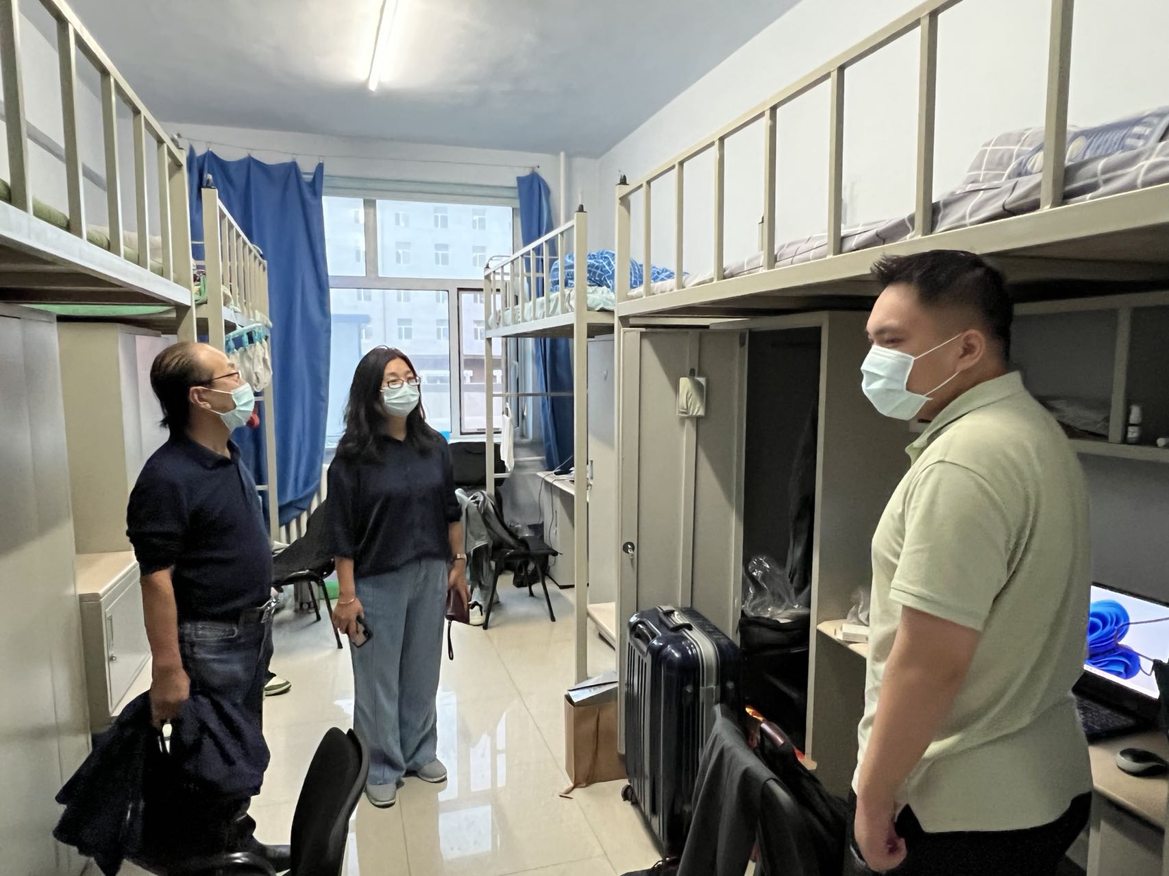 副院长李洪岩、综合办公室主任丁红枫、研究生辅导员孙佳钰深入研究生寝室,开展公寓安全检查专项行动。