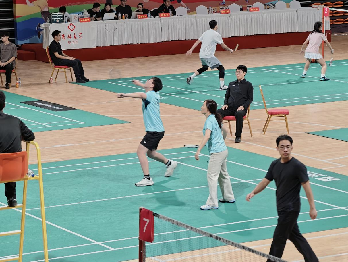 参赛队伍的表现可谓亮点纷呈,将团队协作与拼搏精神展现得淋漓尽致。在关键的混合双打对决中,教师选手凭借稳定的心态控制节奏,学生选手则以敏捷的反应发起突袭,两人眼神交汇间便能领会战术意图——一次精准的网前截击、一记势大力沉的后场扣杀、一回惊险的极限救球,每一个精彩瞬间都引来场边观众的阵阵喝彩。