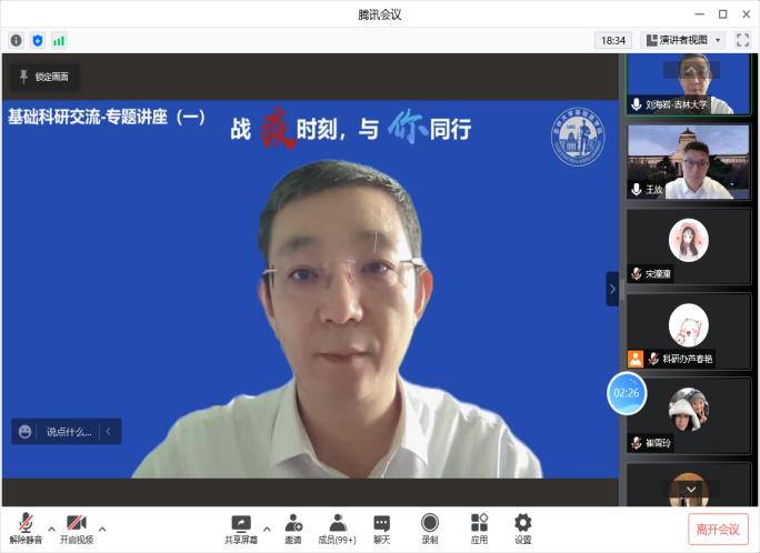 院长王放教授做了题为“Progress of virus detection technology and pathogenicity of SARS-Cov-2 Omicron”的专题讲座。王放教授首先以新冠病毒为例,详细阐述了目前全球范围内开展的病原体检测方法,并介绍了新型前沿的病原体检测技术。王放教授又分享了近期发表于CNS期刊上的新冠病毒最新科研动态,强调新型冠状病毒奥密克戎是新冠病毒的变异株,通过对比新冠病毒不同亚型的病原学特征及致病性,总结了疫情之下我们该如何进行有效的防护以及科学的治疗方式。与会师生们针对最前沿的新冠病毒检测技术、新冠病毒感染治愈后是否会形成机体免疫等方面展开积极互动交流。