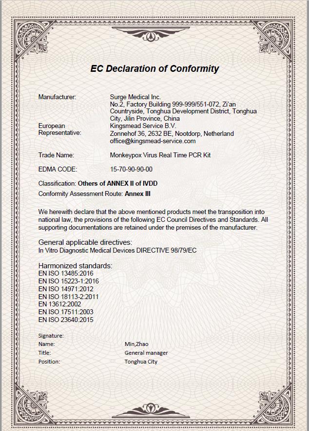、通化市科技局和吉林双正医疗科技有限公司共同签署的“体外诊断试剂POCT研发技术平台”等科研平台,紧急研制出了两种猴痘病毒检测试剂盒——猴痘病毒抗原检测试剂盒(胶体金法)和猴痘病毒核酸检测试剂盒(荧光PCR法),并于2022年5月24日获得了CE认证。这是王放教授团队在传染病诊断检测方面又一重要成果。