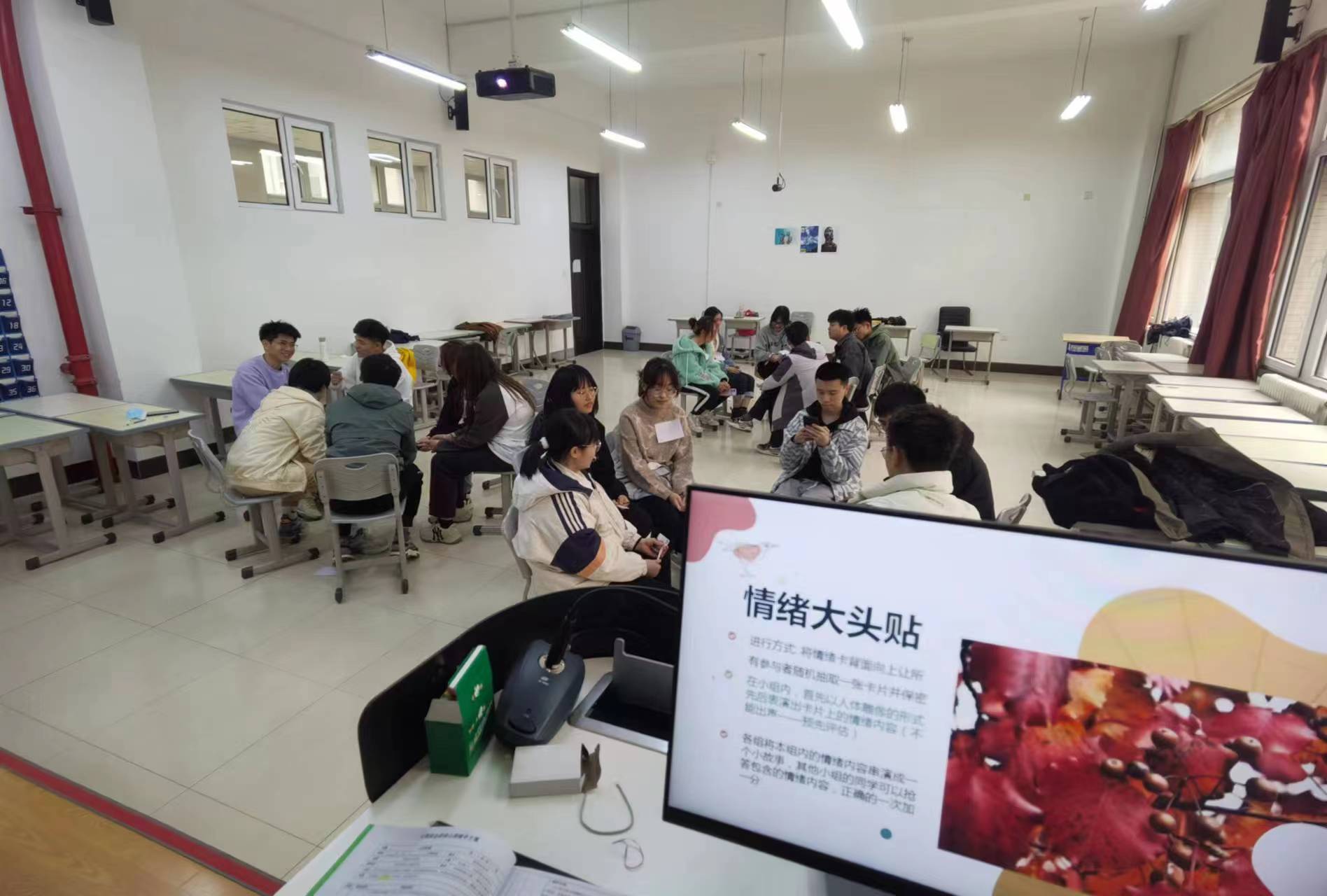 全体本科生在心理健康指导中心指导下,学办主任李东洋和朋辈心理辅导员朴炫旭的带领下,在李四光楼214教室开展了“心灵沟通”主题班会。