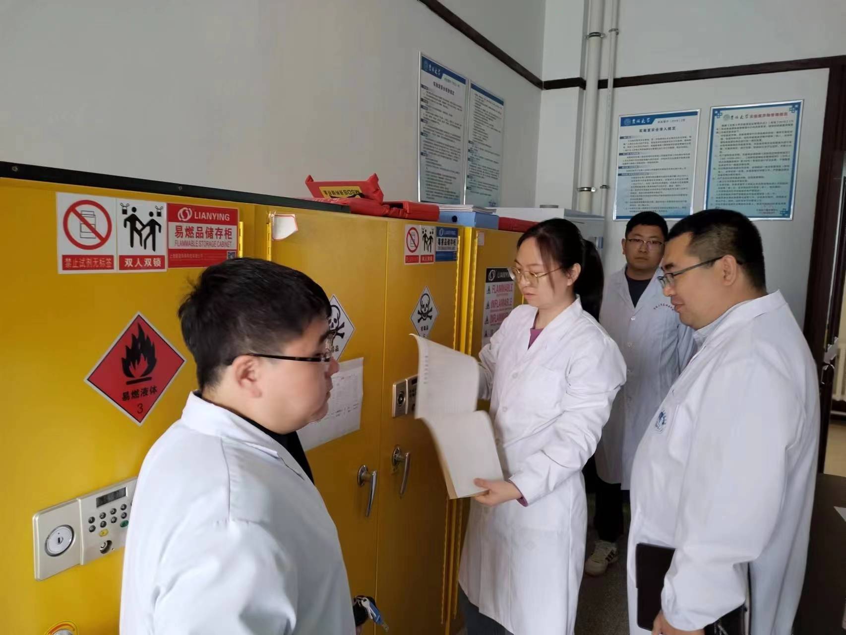 科研实验室,重点对各学系、实验中心的实验室、办公场所的危化品管理,废液及废弃物的处置,设备设施用电安全及实验室日安全检查记录,水电气使用情况,高温高压设备的使用记录等情况进行了全面检查。针对检查中发现的问题,现场下发整改通知单,要求限期整改,确保各项安全措施落到实处,隐患整改落实到位。
