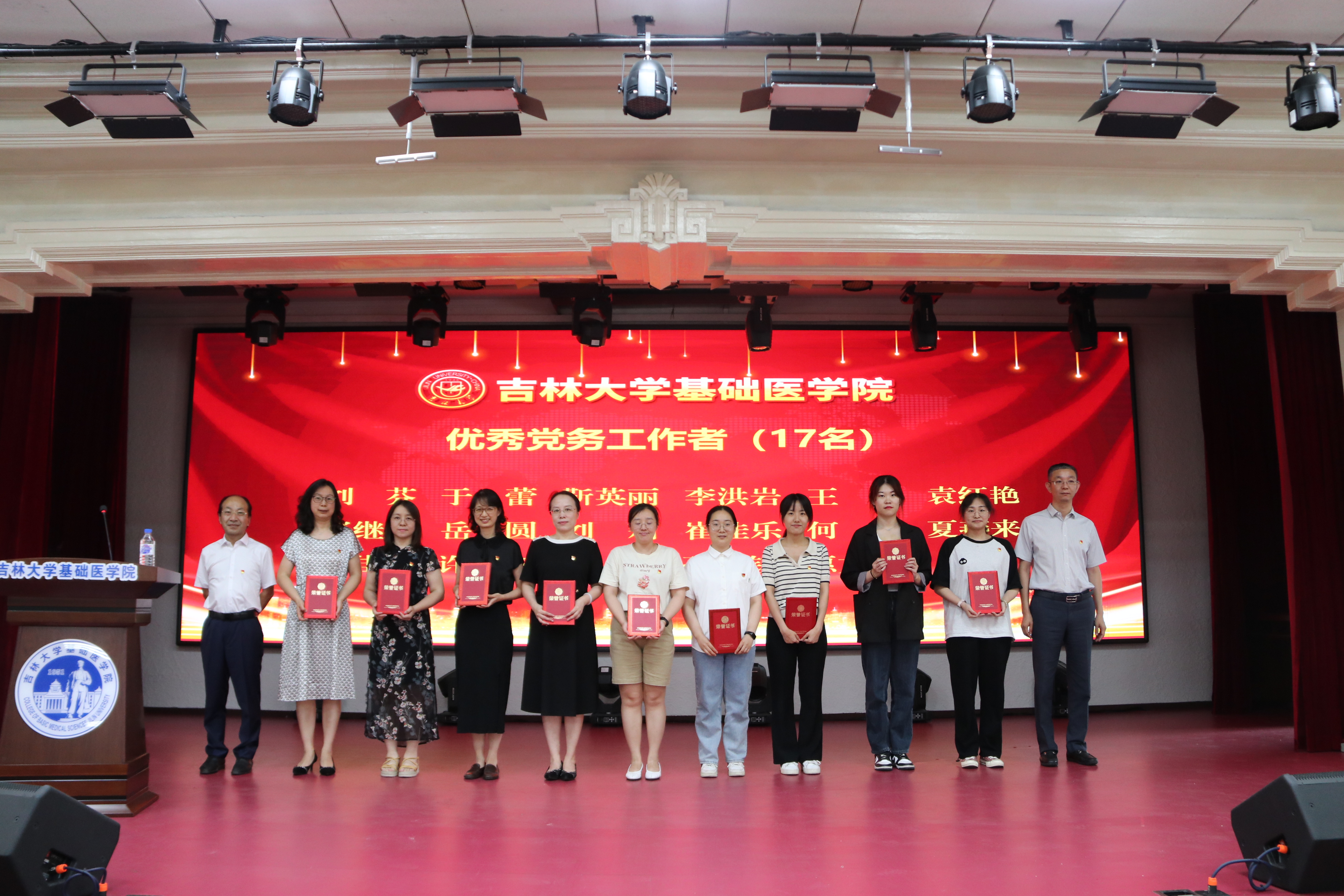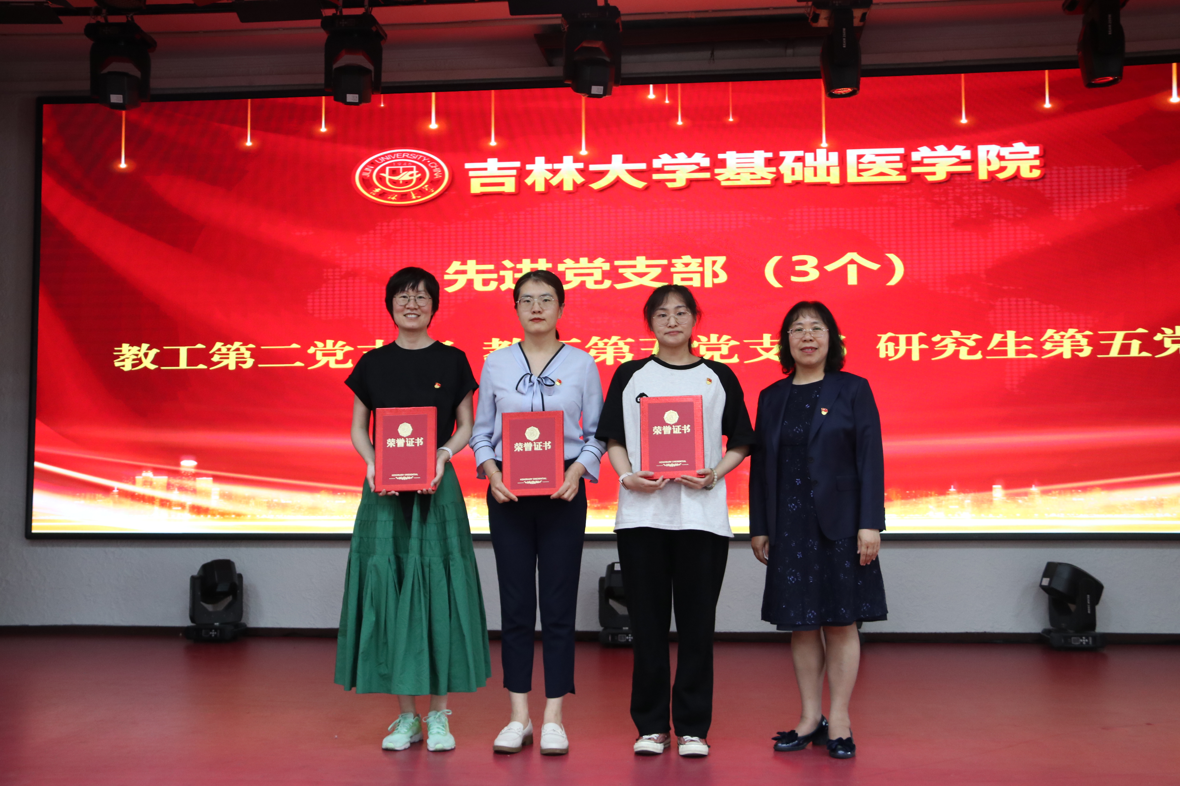 党委委员、领导班子成员为先进党支部、优秀党务工作者和优秀共产党员代表颁发了荣誉证书。优秀党务工作者刘芬作为代表上台发言。