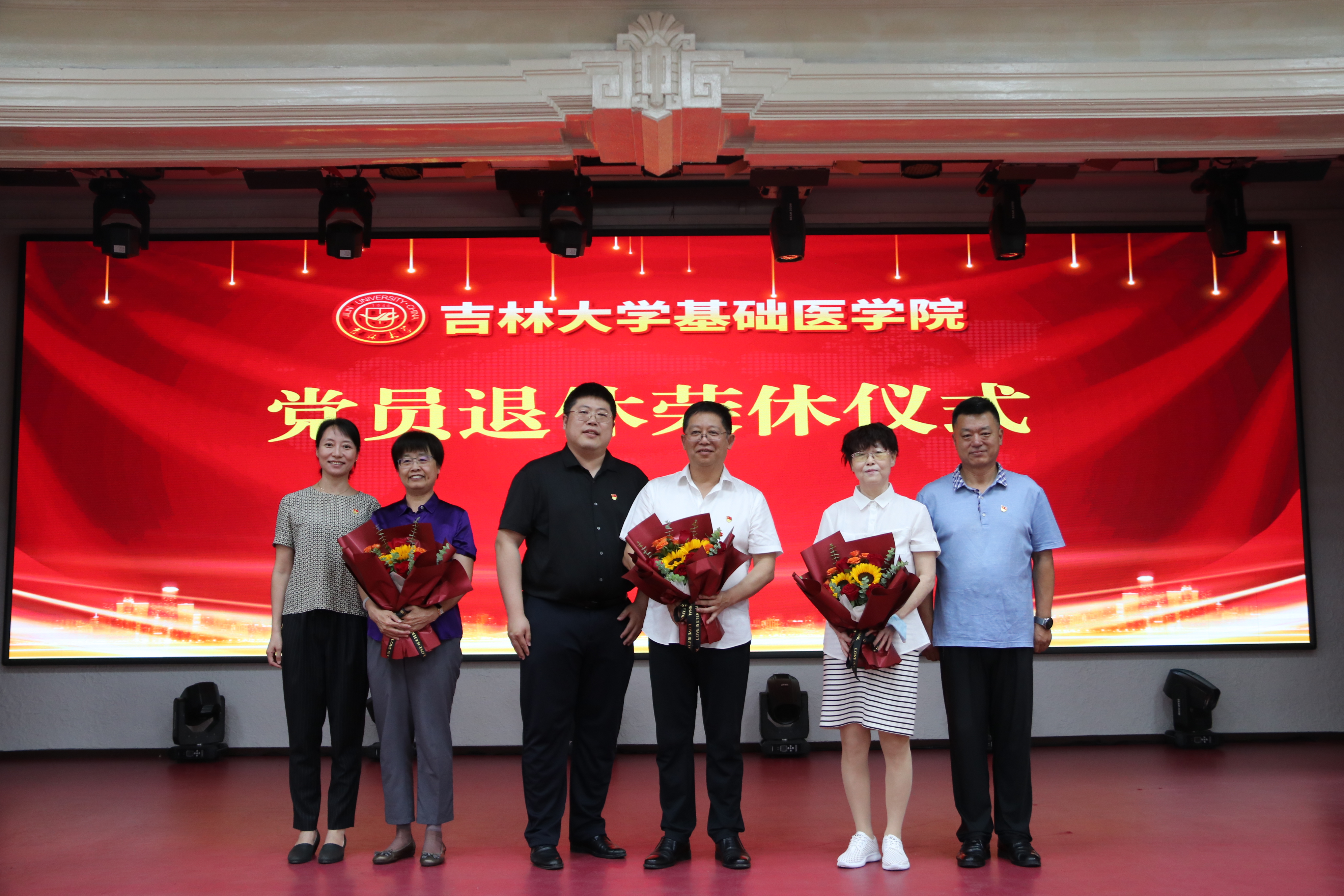 党员退休荣休仪式。退休党员所在支部分别为三位退休党员送上献花,党委书记王晓荣为退休党员颁发澳门六合彩资料库