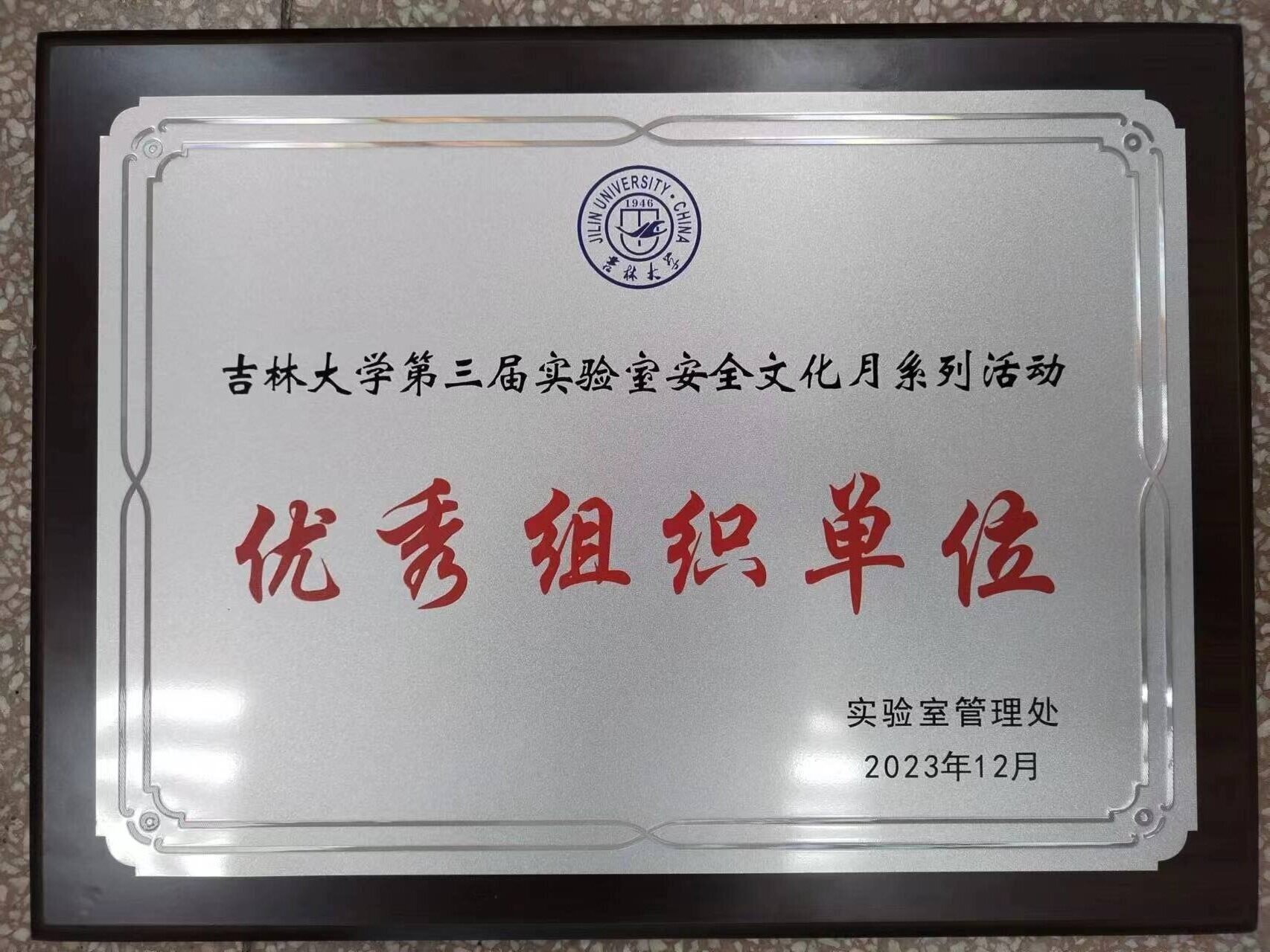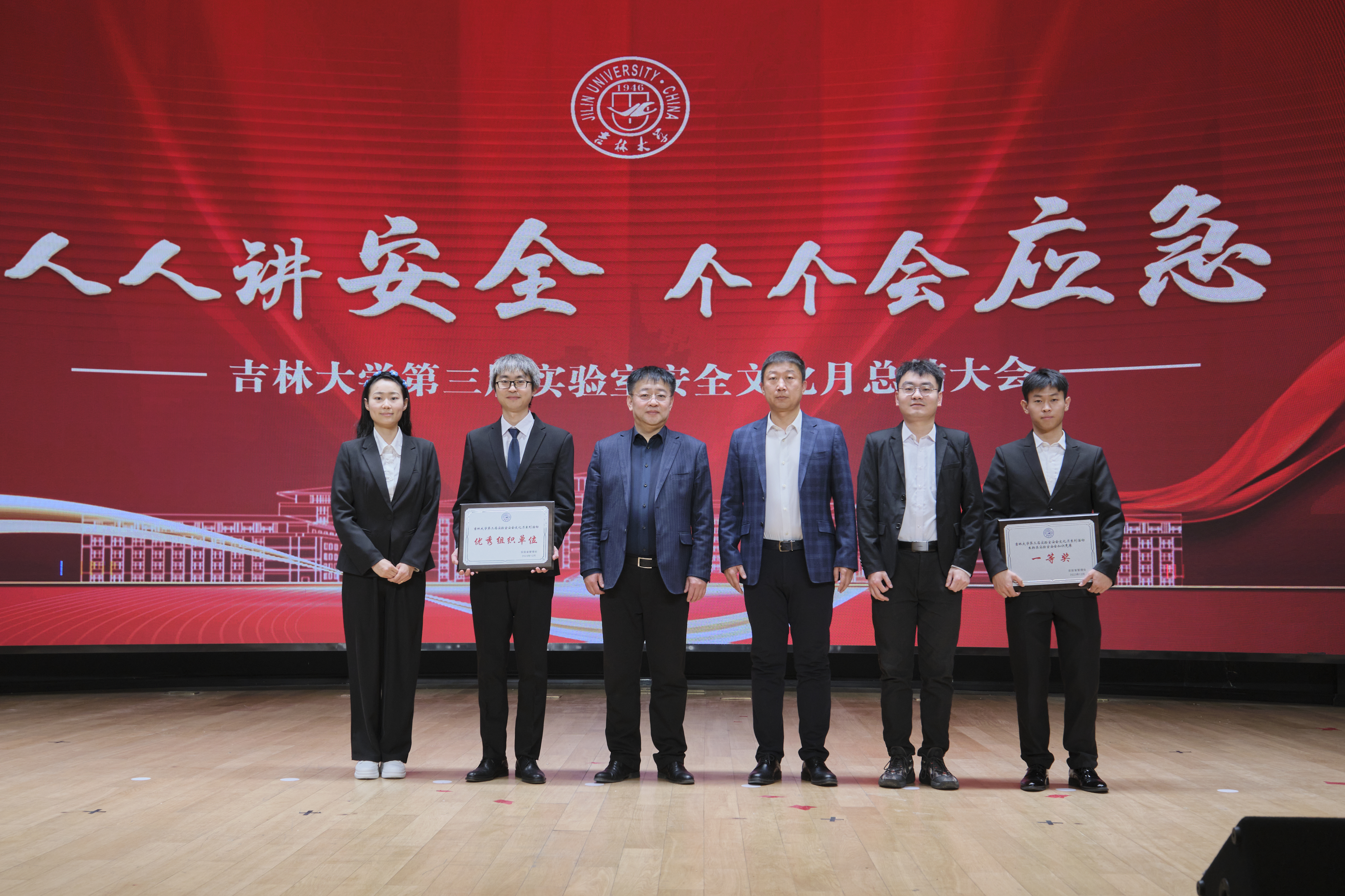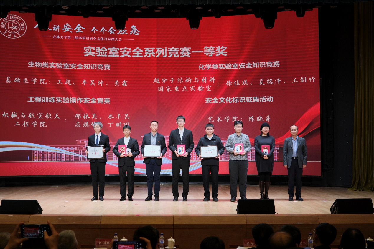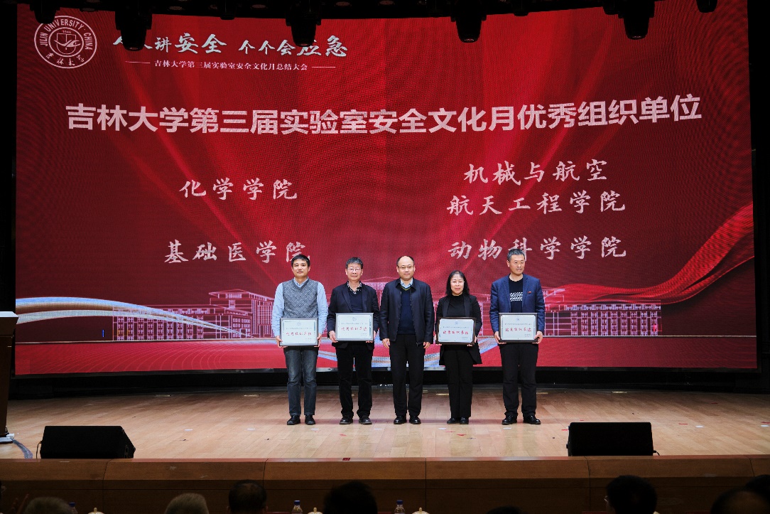 被评为实验室安全文化月优秀组织单位,马琰铭副校长为优秀组织单位颁奖,王晓荣书记代表澳门六合彩资料库