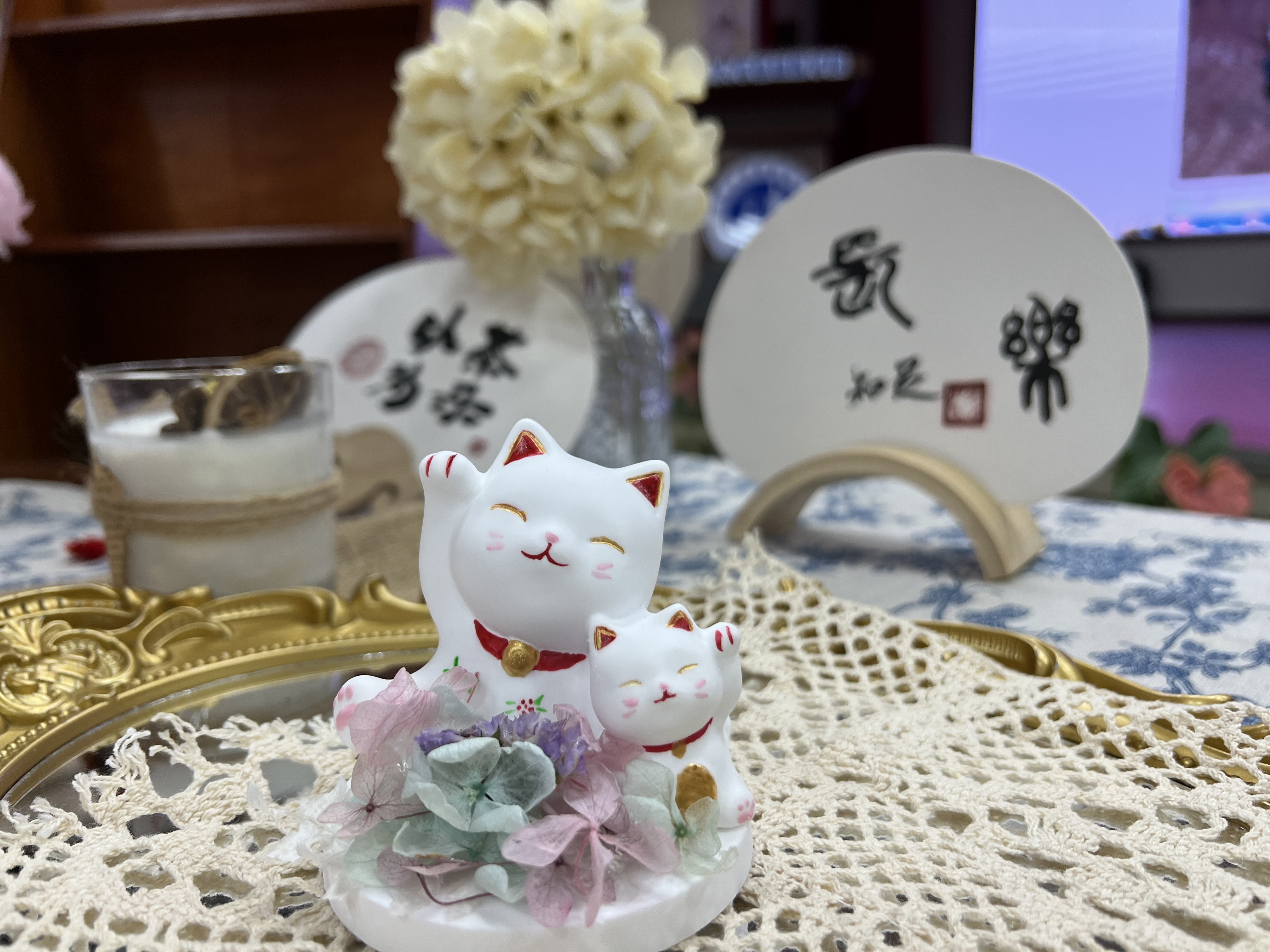 特地邀请了专业老师进行讲解,在老师的介绍下大家了解了香薰手绘招财猫的制作流程以及注意事项。