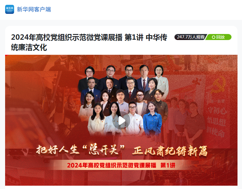 最后,与会同志集体观看了2024年高校党组织示范微党课《中华传统廉洁文化》。
