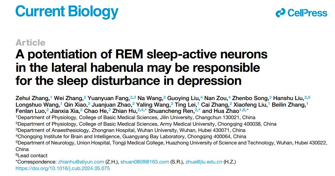 赵华教授团队、陆军军医大学胡志安/任栓成团队合作在Current Biology在线发表题为 “A potentiation of REM sleep-active neurons in the lateral habenula may be responsible for the sleep disturbance in depression”的研究论文。该研究证明LHb的REM睡眠活跃神经元在抑郁症所致睡眠障碍中具有不可或缺的作用,这一发现不仅确定了抑郁所致睡眠障碍发病中一个新靶点及其潜在机制,更为临床防治抑郁睡眠障碍提出了新策略。 Current Biology 是发表生物学领域研究的国际顶级刊物,中科院分区为1区的TOP期刊,最新影响因子8.1(澳门六合彩资料库