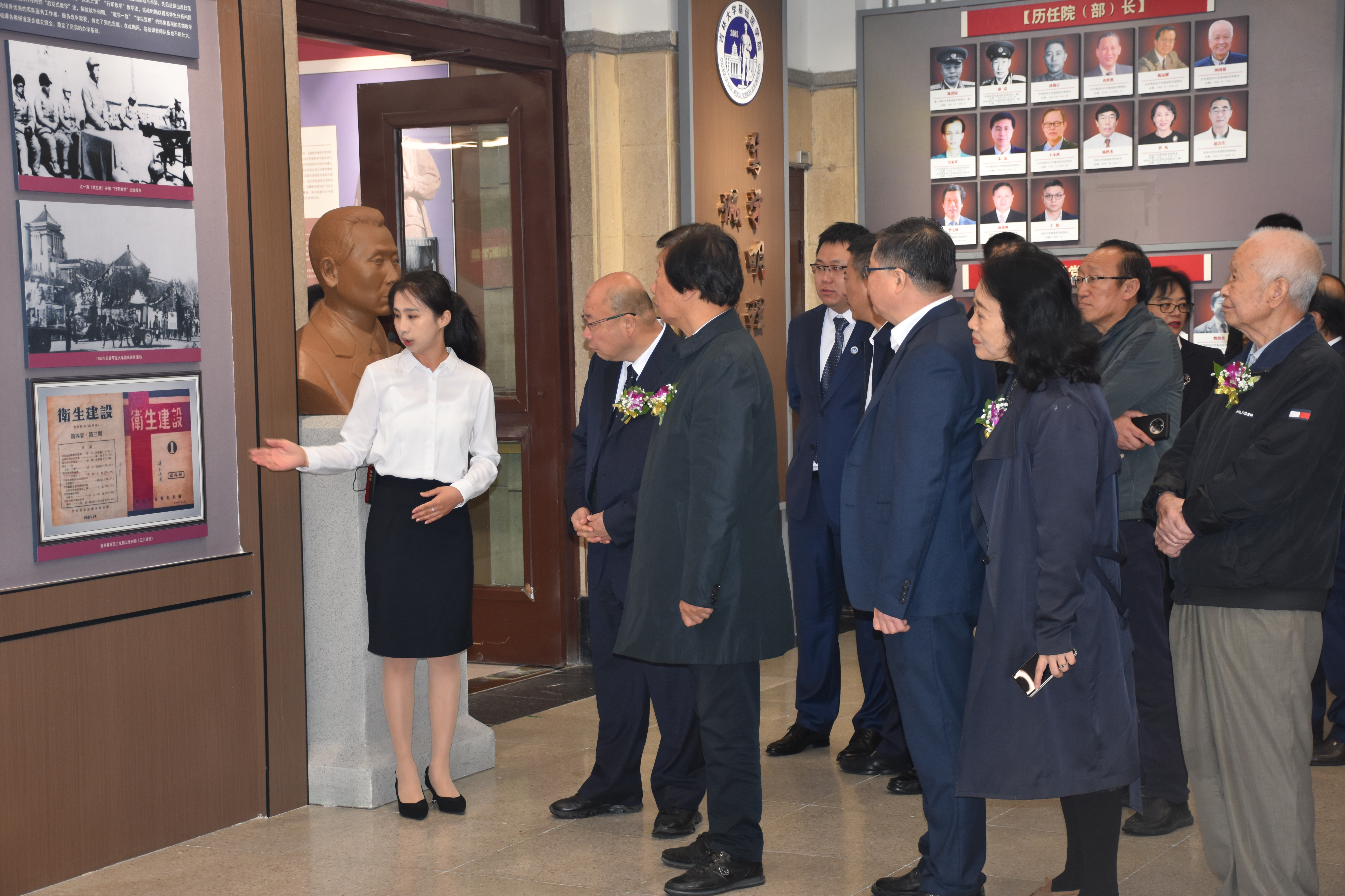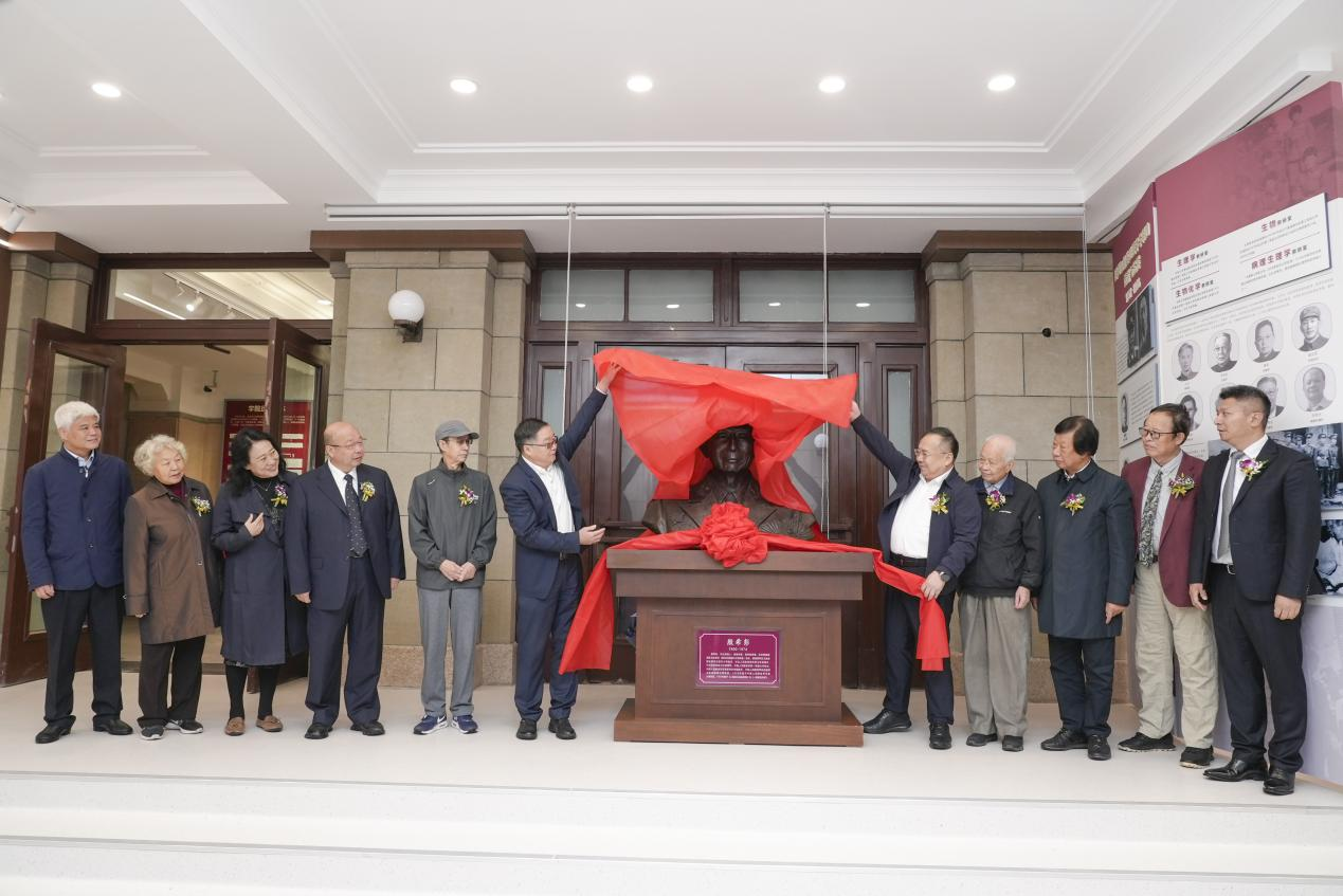 在热烈的掌声中,与会领导们共同为院史馆开馆揭幕。开馆仪式结束后,各位领导嘉宾移步楼内,为殷希彭先生塑像揭幕。