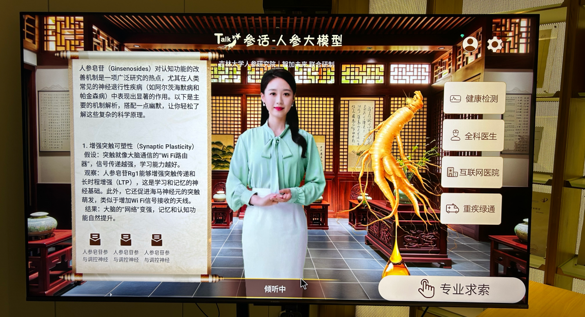 “参话”人参大模型与DeepSeek的深度融合,可以显著提升其在生物信息学分析、药物分子虚拟筛选、实验方案优化、文献挖掘整理等领域的应用效能。在医疗领域,人参大模型能够辅助中医药发展,使“百草之王”得到更好的认识和更科学的应用,进而助力人参产业高质量发展;在教育领域,可以让学生更好地学习中医药知识,培养更多熟练掌握人参等中医药应用的现代医学人才。