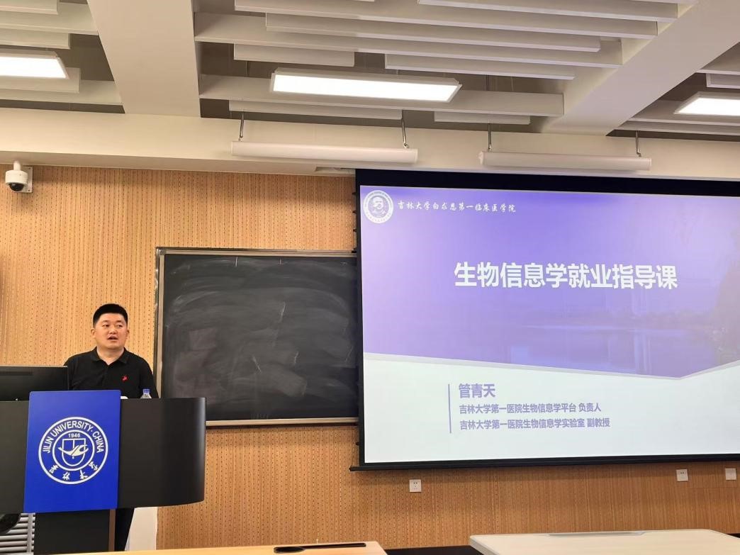 第一医院生物信息学平台负责人、生物信息学实验室副教授管青天,为2022级学生带来了一场精彩的就业指导分享课。此次课程聚焦生物信息学领域,从专业概念、市场需求、机遇挑战等多维度展开深入讲解,为学生们的职业规划提供了宝贵指引,生物医学科学系主任张灵教授参与本次分享课。