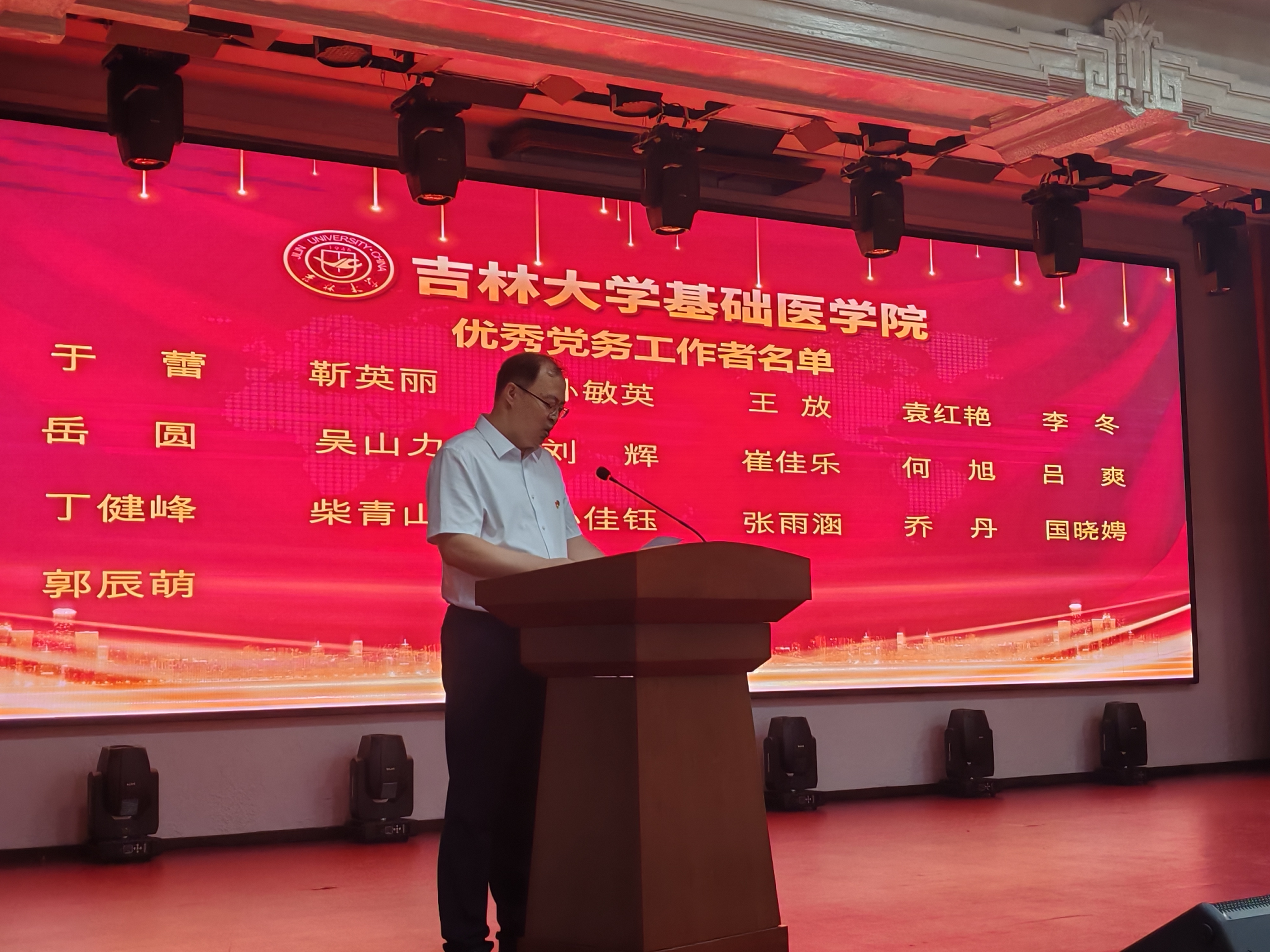 各党支部和全体党员奋进新征程、建功新时代的精气神,进一步凝练基础将神和魂魄,让基础精神成为每一位基础人的精神内涵。优秀党务工作者于蕾作为代表上台发言。