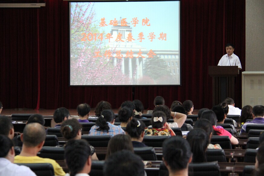 在二楼学术报告厅召开2014年度春季学期工作总结大会,党委书记孙赵华、院长孙连坤等澳门六合彩资料库
