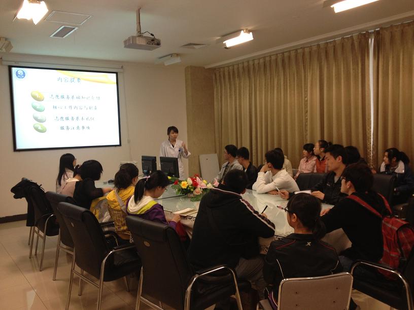 首先,白求恩第一医院公益活动部工作人员对参加活动的志愿者进行了培训。培训内容主要包括志愿服务基础知识介绍、核心工作内容与职责、志愿服务基本礼仪、服务注意事项等。工作人员通过PPT和亲身示范的方式,向志愿者详细介绍了志愿服务中的基本行为礼仪,使同学们对活动的内容、具体安排有了更深入的了解。随后,志愿者们满怀热情开始了志愿服务活动,将所学应用到实践。