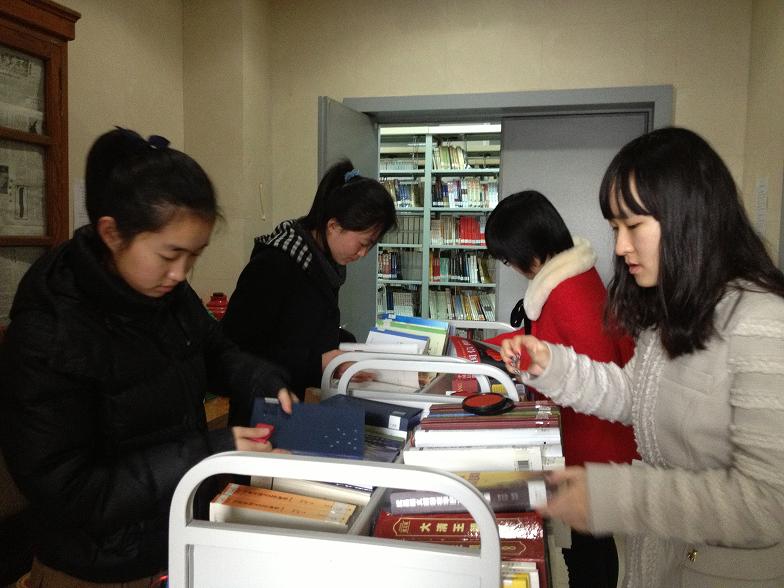 中心图书馆帮助工作人员整理书籍,各团支部都以各自特有的方式感悟着雷锋精神,体会着奉献的快乐。