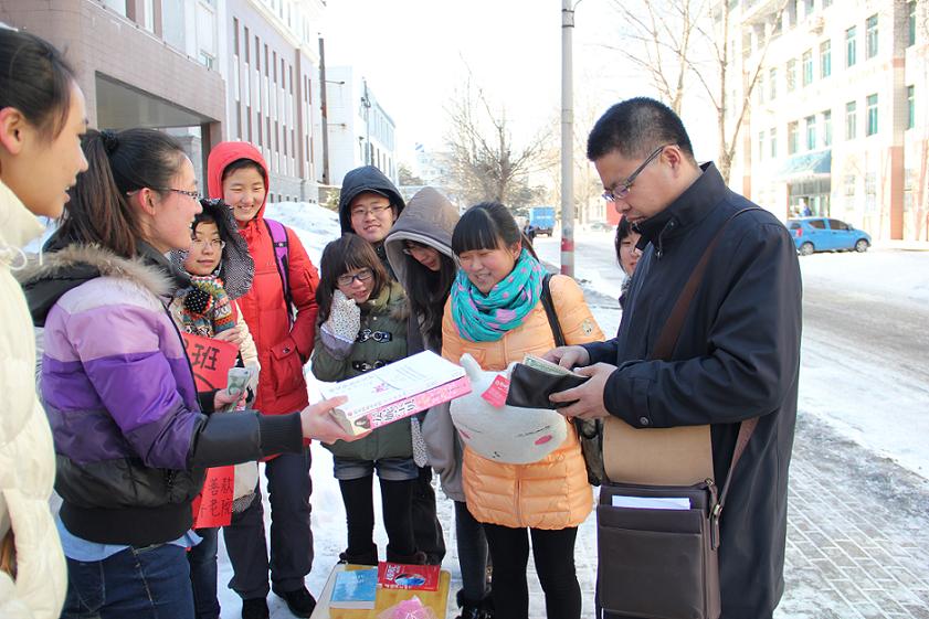 学生募捐活动。3月7日晚,701106团支部在新民校区一公寓和二公寓开展爱心捐赠活动,得到同学们积极响应。活动结束后,701106团支部将募得的几百本书、300支笔及书包等爱心物品捐赠给长春市南关区小南小学的学生们,此次活动还引起了《城市晚报》的关注。701102团支部、701107团支部分别于3月7日走访了敬老院,为老人们带来欢笑与温馨。3月8日中午,701108团支部在新民校区第一教学楼组织开展了爱心义卖活动,并将募得善款转交给集安路敬老院,并前往敬老院给老人们送去温暖。701109团支部则走进社区为孤寡老人周举花筹集善款,尽一份心力,奉献一片爱心。