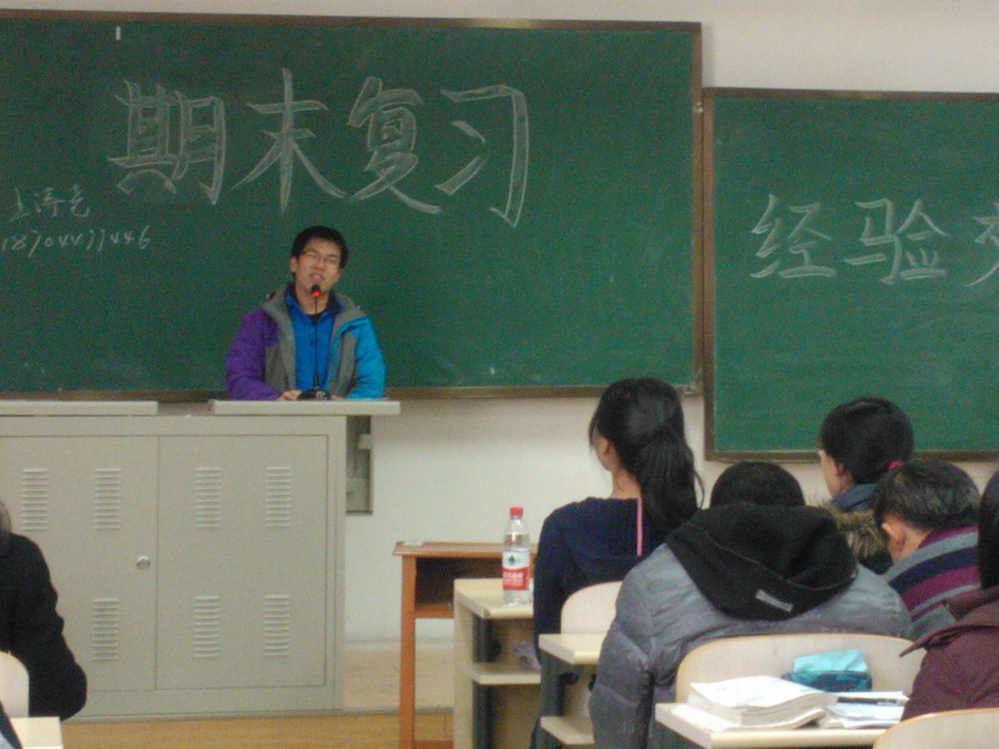 2012级临床医学五年制、临床医学七年制分别在在中心校区李四光教学楼102教室、202教室召开期末复习经验交流会。辅导员老师魏宇航,2008级临床医学七年制王诗尧,以及2011级屈昊、钱玥彤、韩慧侨及全体2012级学生参加了此次活动。