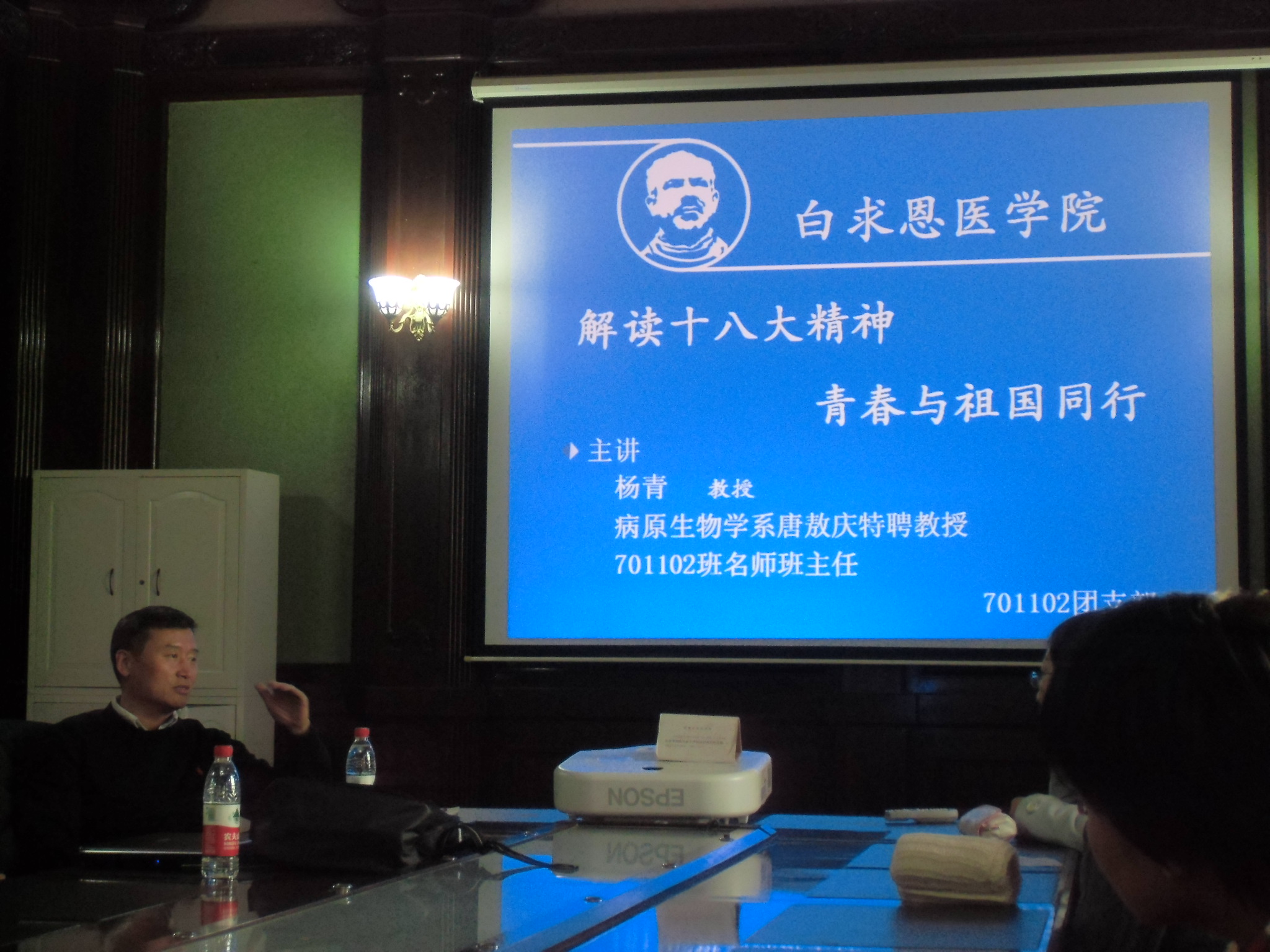 11月25日下午,白求恩医澳门六合彩资料库 病原生物学系唐敖庆特聘教授杨青在新民校区基础楼四楼会议室与所带班级701102班全体同学召开主题班会。