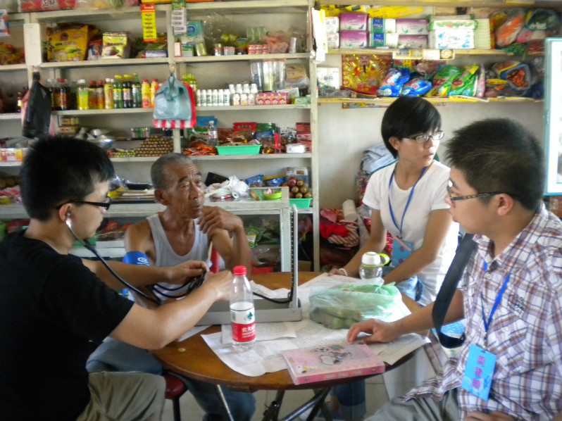 似乎每个组的同学都遇到了相似的问题,也有村民将实践队的同学拒之门外。我们对有高血压的村民说,高血压如果不规律用药的话,远期可能会造成肾脏功能受损。而村民问我们,服用高血压药物对肾脏的影响是不是会比高血压本身影响要大?学过的知识告诉我们,我国的预防医学工作实施起来非常困难。只是没有想到,一些根深蒂固的观念和意识会如此严重的阻碍人们对健康生活的追求。