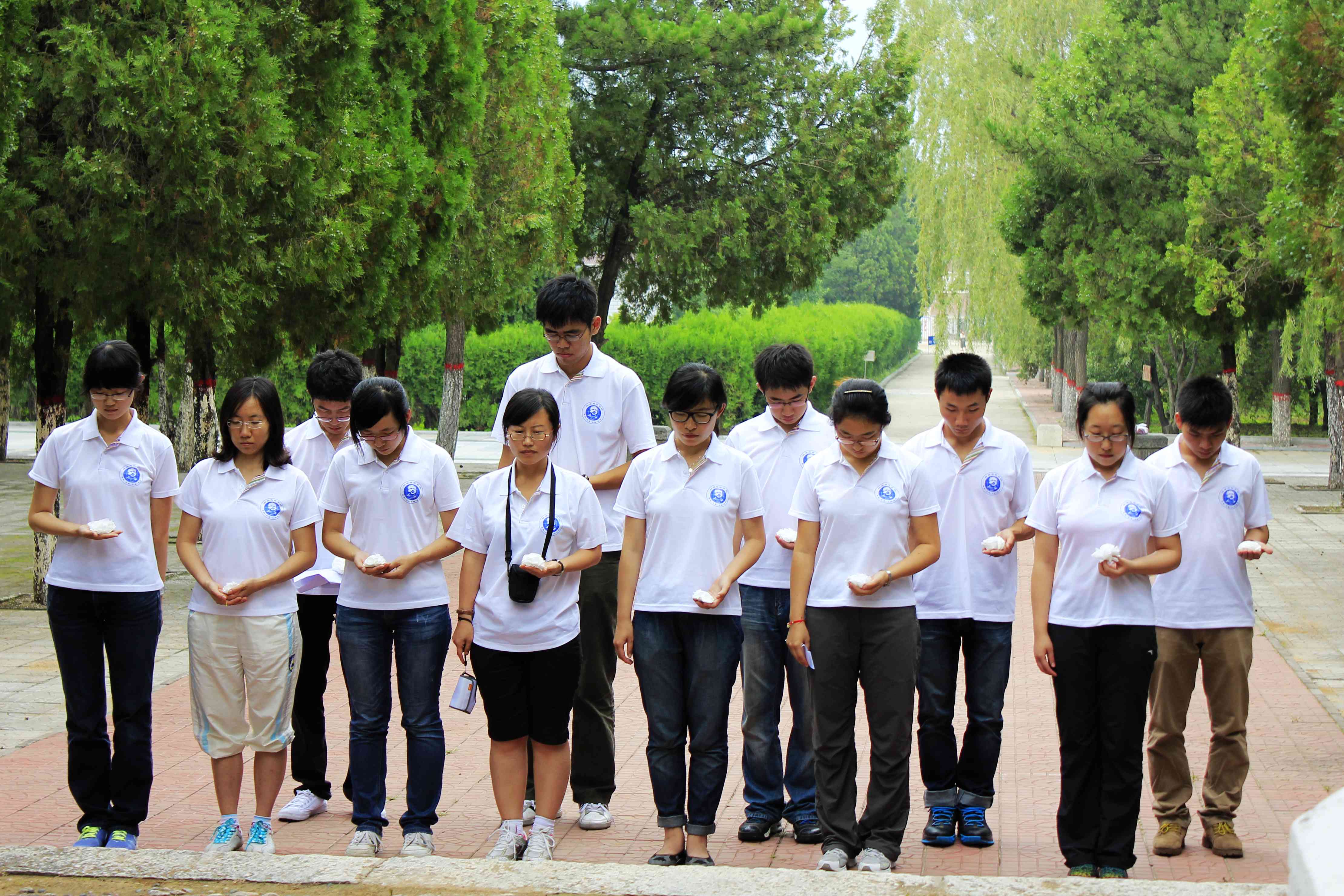 下午,社会实践小分队满怀崇敬之情来到了晋察冀烈士陵园,进行白求恩墓祭扫仪式。这里非常幽静,苔痕阶绿,青松围绕,踏上青石台阶,看到白求恩肃穆的雕像,是那样亲切。首先,大家向白求恩墓默哀一分钟,其次,朱鹤代表志愿者讲话,她表达了学习白求恩精神及坚持做一名医务工作者的决心。随后,在实践小分队队长赵狄的带领下,所有队员庄严宣誓,“健康所系,性命相托”的铮铮誓言回荡在每个人的心中。然后,带队教师魏宇航进行总结,她鼓励大家以白求恩精神作为自己的准则,努力奋斗,争取早日成为一名合格的医生。最后,大家向白求恩墓敬献白花。整个仪式正式而又庄严,队员们都心潮澎湃,更坚定了自己学医的信念与梦想。