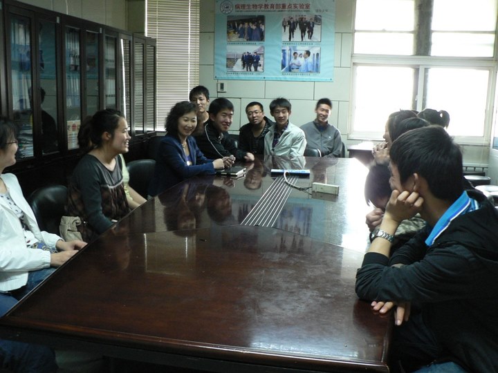 文化节“尊师重道”团支部风采展活动,5月9日下午,701104团支部前往新民校区基础楼三楼病理生物学系会议室探望病理生物学教育部重点实验室副主任、博士生导师全成实教授。