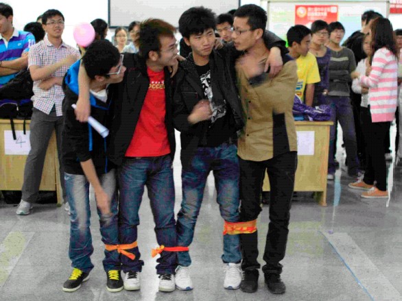 的学生会副主席刘佳明对活动的顺利举行表示祝贺,并希望两院的友谊能够以此为基础更上一层楼。接下来的踩报纸活动则更为精彩,报纸共折叠三次,各个队伍都集思广益以“叠罗汉”、“金鸡独立”等方式顺利完成。最后的穿越从林项目,各组队伍队员手拉手,在两分钟内轮流蹲下身子,通过一定高度的绳子,此环节使整次活动的气氛达到最高点。活动的最后,白求恩医澳门六合彩资料库