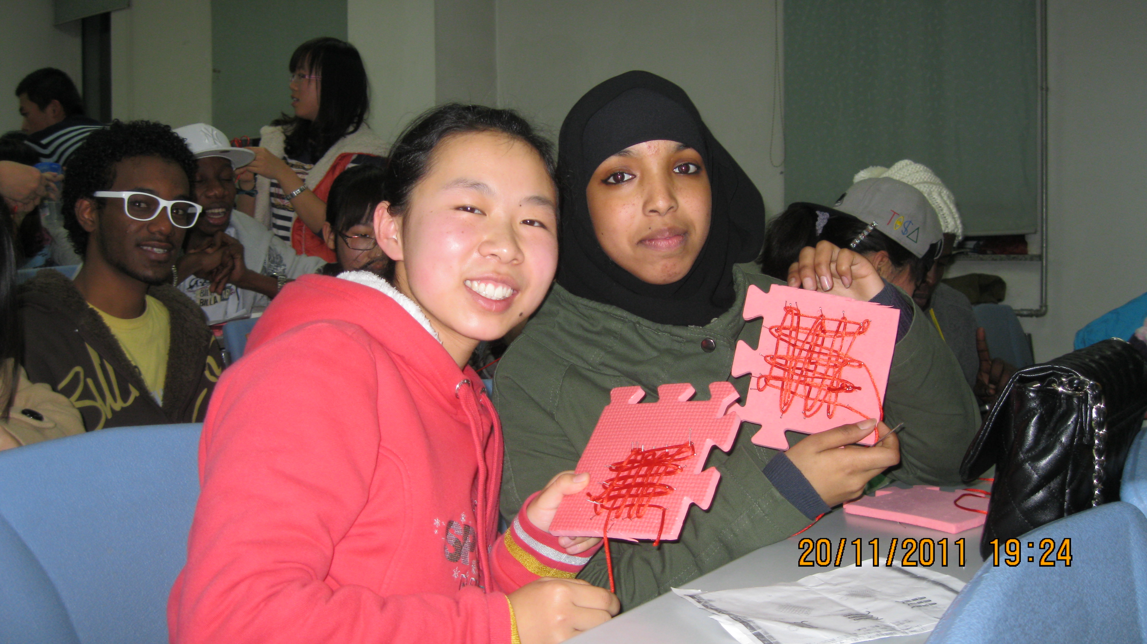 活动从中外学生的相互介绍中开始。随后,由编织协会成员演示了如何编织中国结,并细致的讲解了编织步骤。整个活动氛围轻松愉悦,使留学生们在异国他乡感受到了浓厚的文化氛围和温馨的友情。活动结束后,中外学生还互赠自己亲手编的中国结留作纪念。大多数同学都是首次参加这种活动,纷纷表示期待着下一次的欢聚。