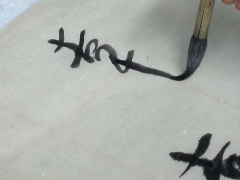 课程中老师先介绍了学习书法所需的毛笔、宣纸、墨,并讲解了坐姿以及执笔方式,从砚台磨墨到正确握笔,从走笔技巧到书法展示,并应留学生要求讲授了寓意“Good Luck”的“幸运”两个字的行楷写法。留学生们的字迹虽然稍显生涩,但足见他们的智慧与热情,老师们手把手指导,逐个纠正,中国学生也尽自己所能解答留学生各种疑问。留学生们对每一个细节都充满了好奇,中国书法里的一横,看似简单,书写却那么复杂,一致感叹中华文化的奥妙之深。