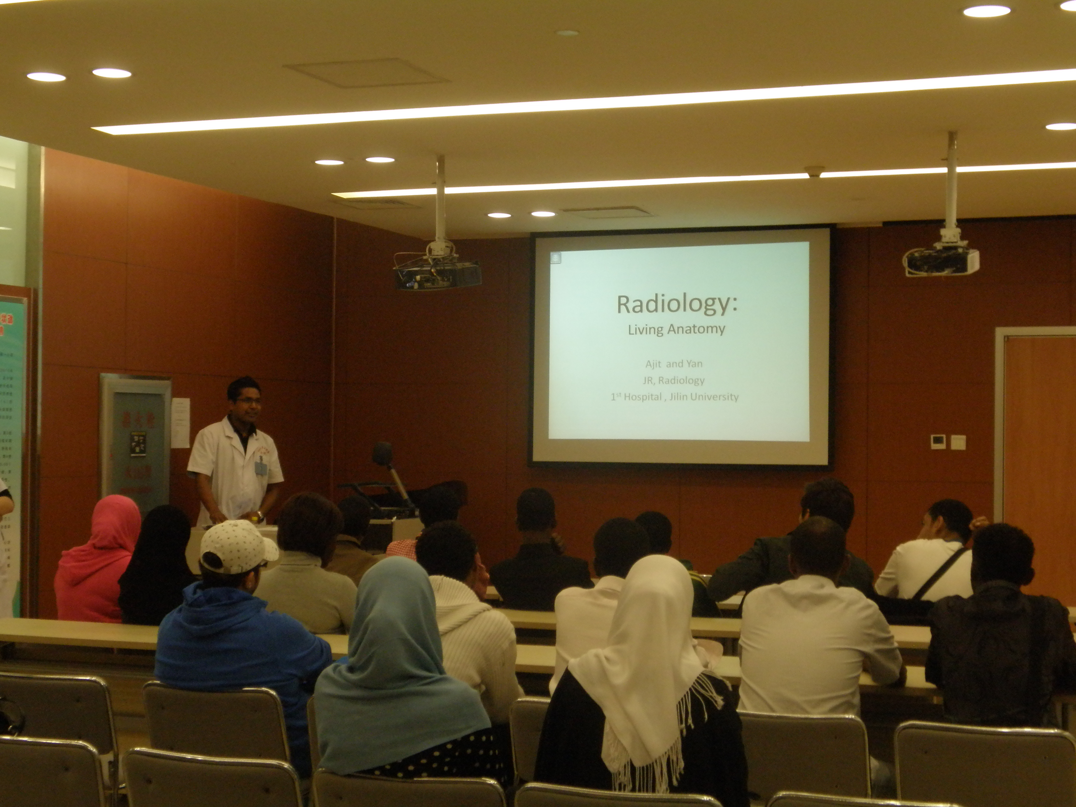 各学科优秀的硕士、博士留学研究生为新同学讲解本学科的基本信息,以及实验室、标本室、科室的具体情况。这些学科包括分子生物学、生物化学、微生物学、组织胚胎学、病理学、妇产科、胃肠外科、脊柱外科、皮肤科、放射线科、心血管科、麻醉科、手外科、风湿科、实验诊断学、以及骨科学。