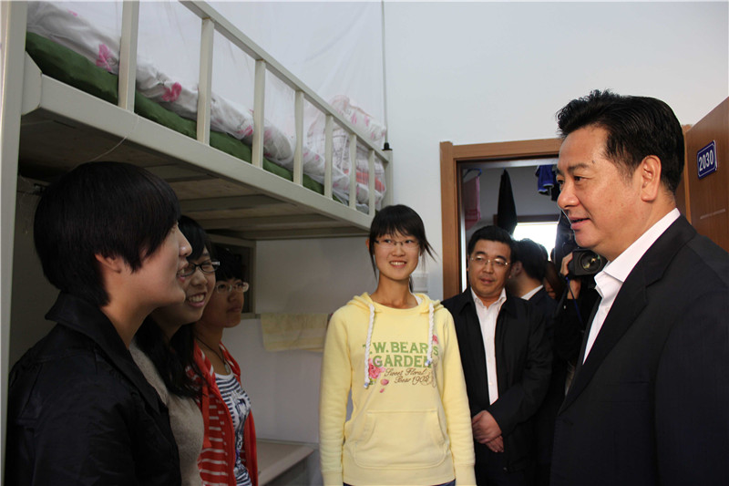 9月18日下午,澳门六合彩资料库 校长李元元、副校长张向东一行来到基础园区一公寓,察看学生住宿情况并看望新生。