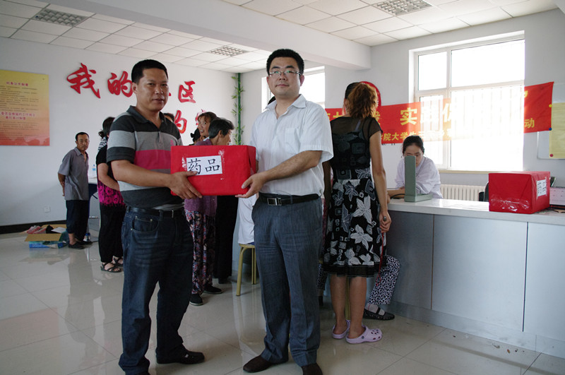 捐赠的药品,并对小分队的到来表示感谢。之后,小分队的成员对村民进行了医疗服务,发放了药品,介绍了健康常识和用药知识,受到村民的欢迎。医疗服务结束后,小分队参观了新农家村的果蔬生产基地。