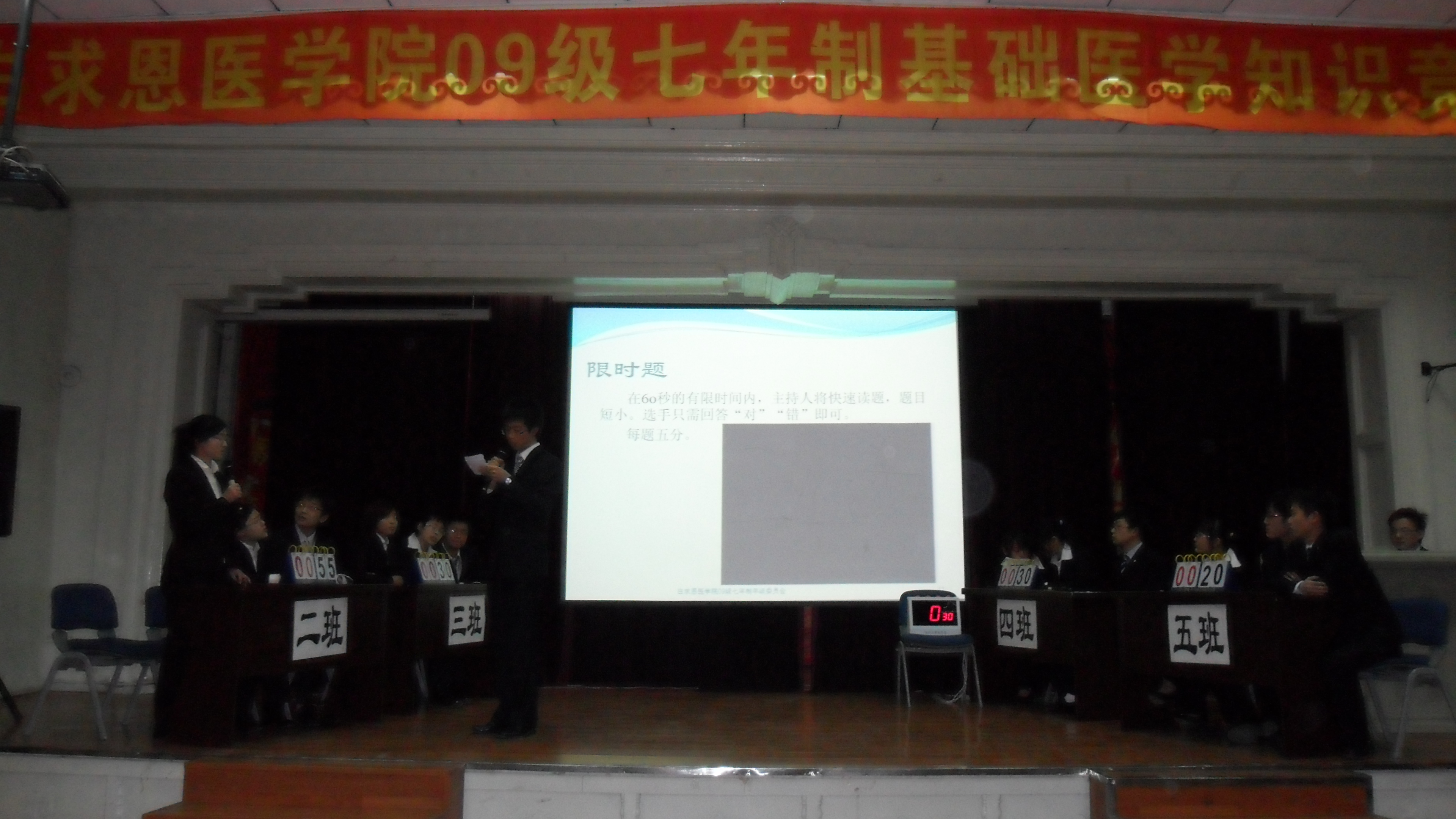 2009级七年制“基础医学知识竞赛”在基础楼二楼多功能学术报告厅举行。组织与胚胎学系主任周莉、生物化学与分子生物学系生物化学教研室副主任杨成君、细胞生物学系主任费瑞、生理学系张春晓老师、解剖学系夏长丽老师担任了此次竞赛的评委。白求恩医澳门六合彩资料库
