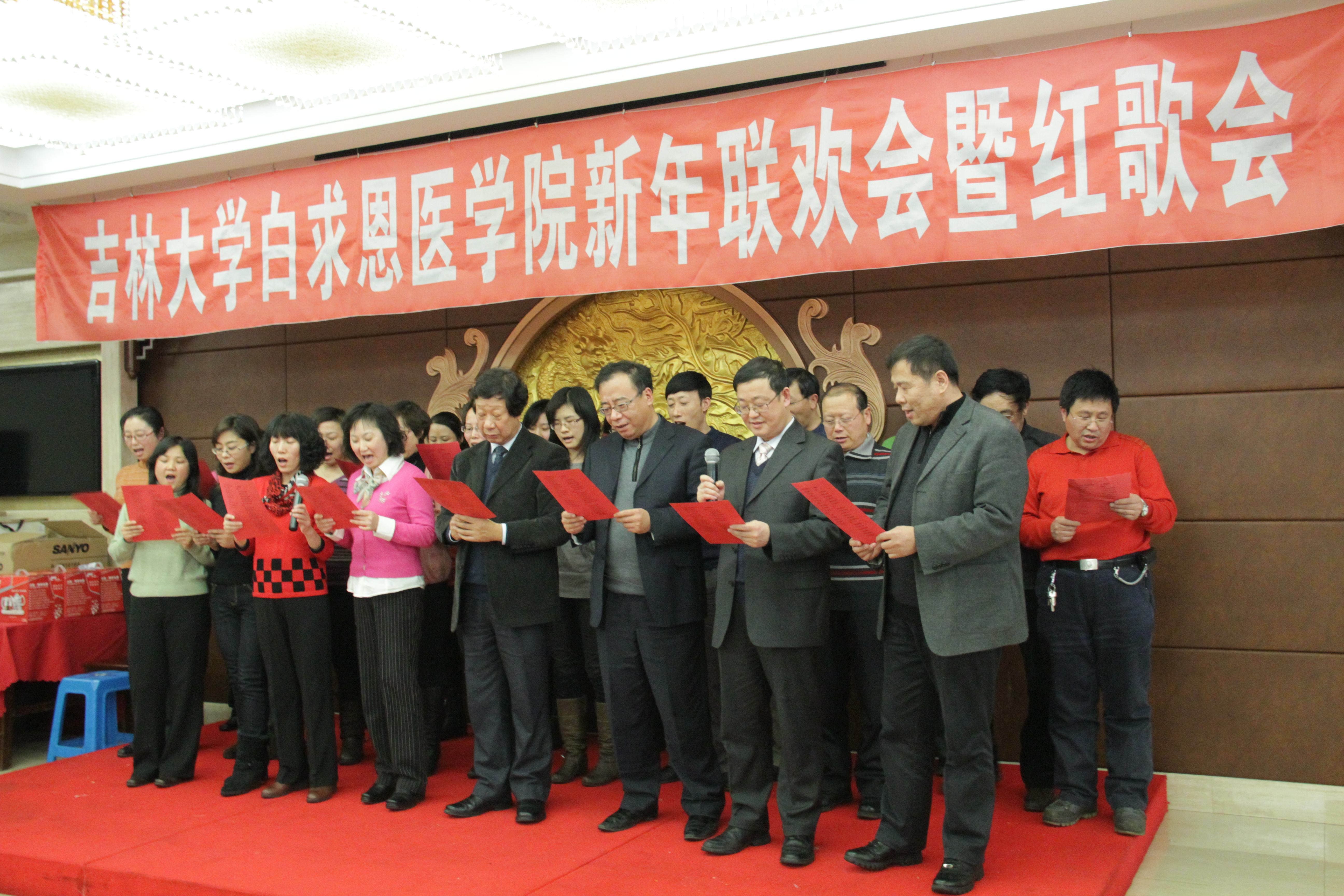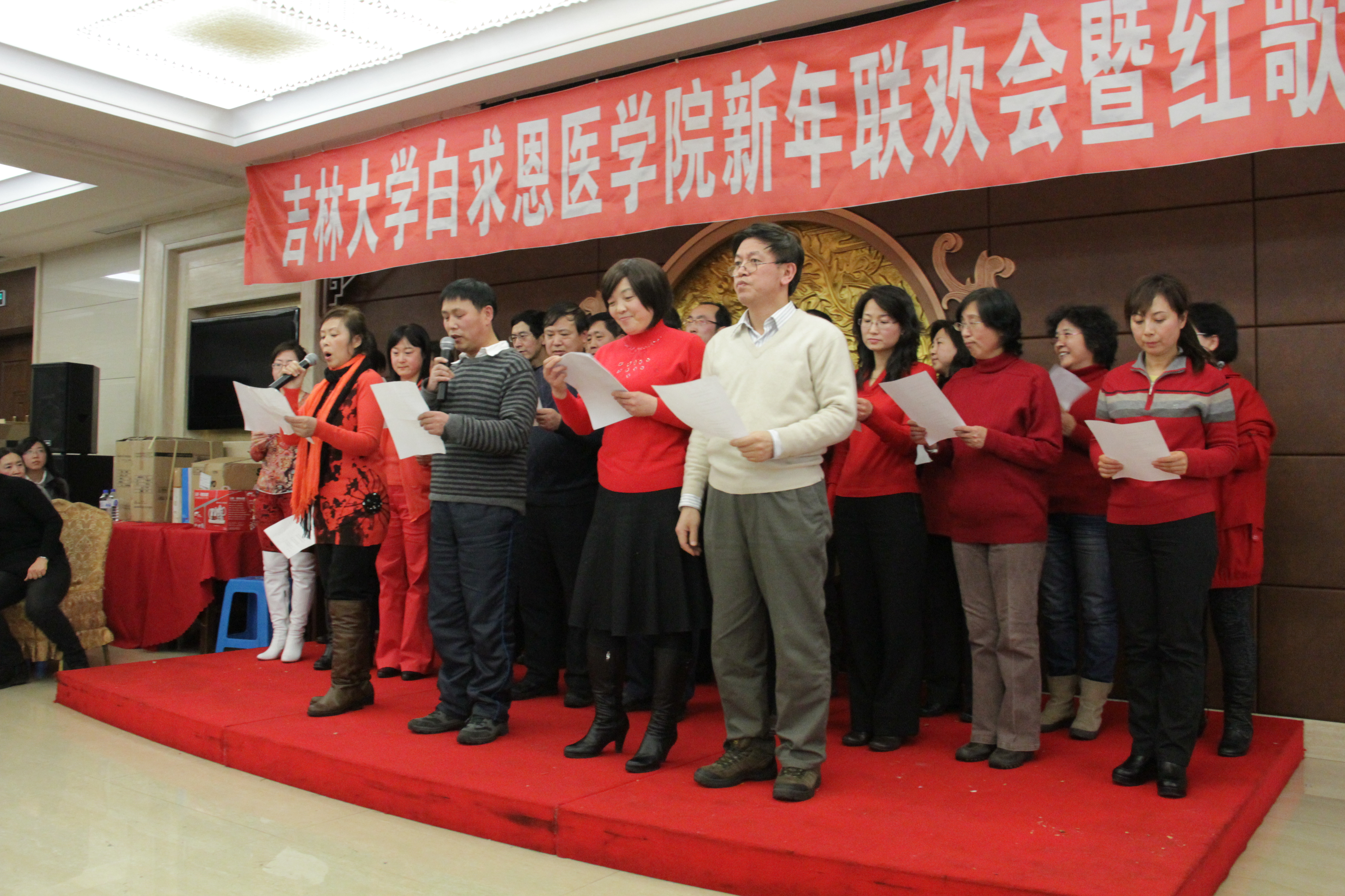 全体教职员工在红歌声中共同向难忘的2010年挥手告别,昂首迎接崭新的2011年!