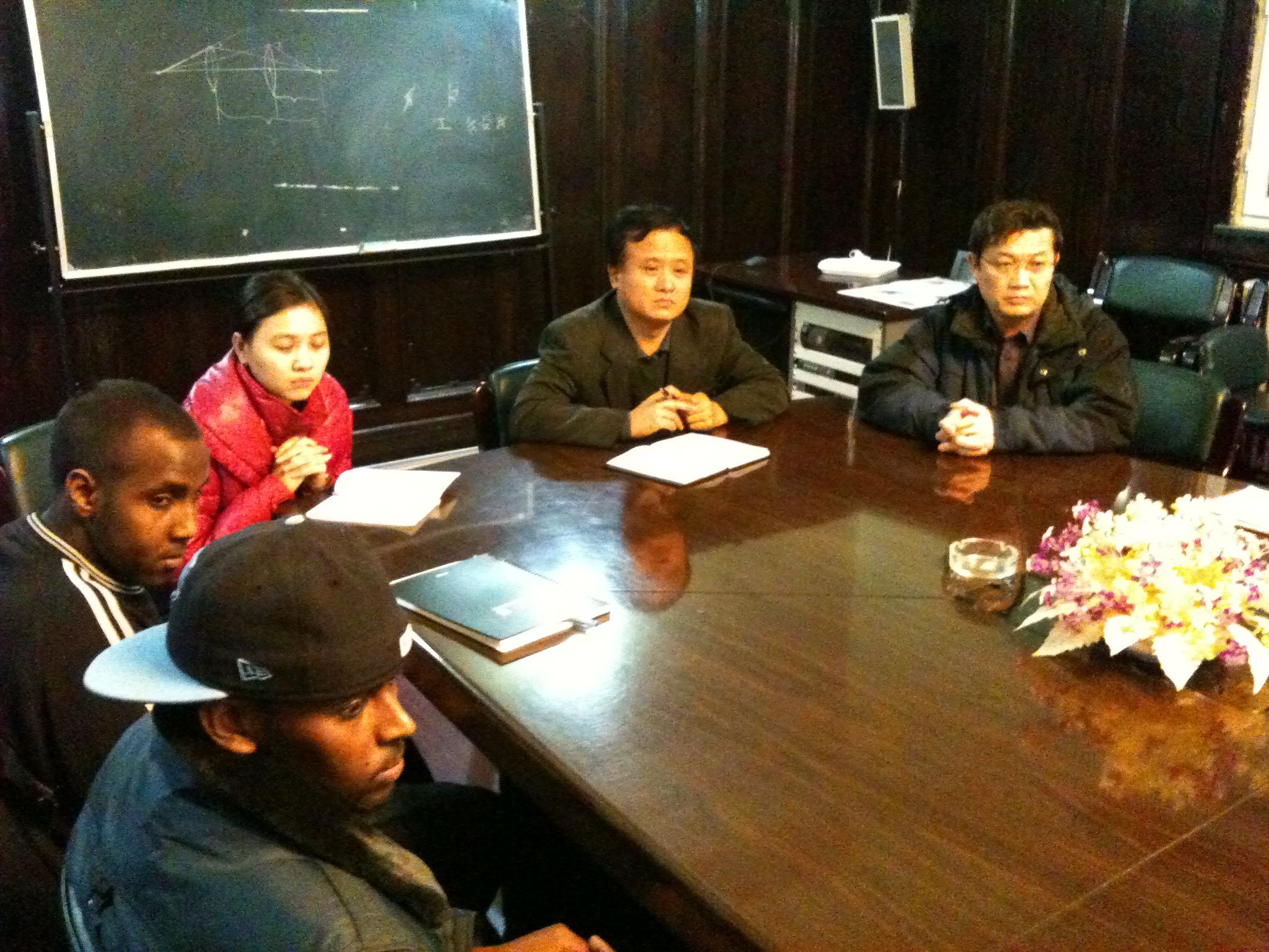 留学生办公室主任颜世军主持,常务副院长孙连坤教授、美籍专家吕巷屏教授应邀参加了座谈会。