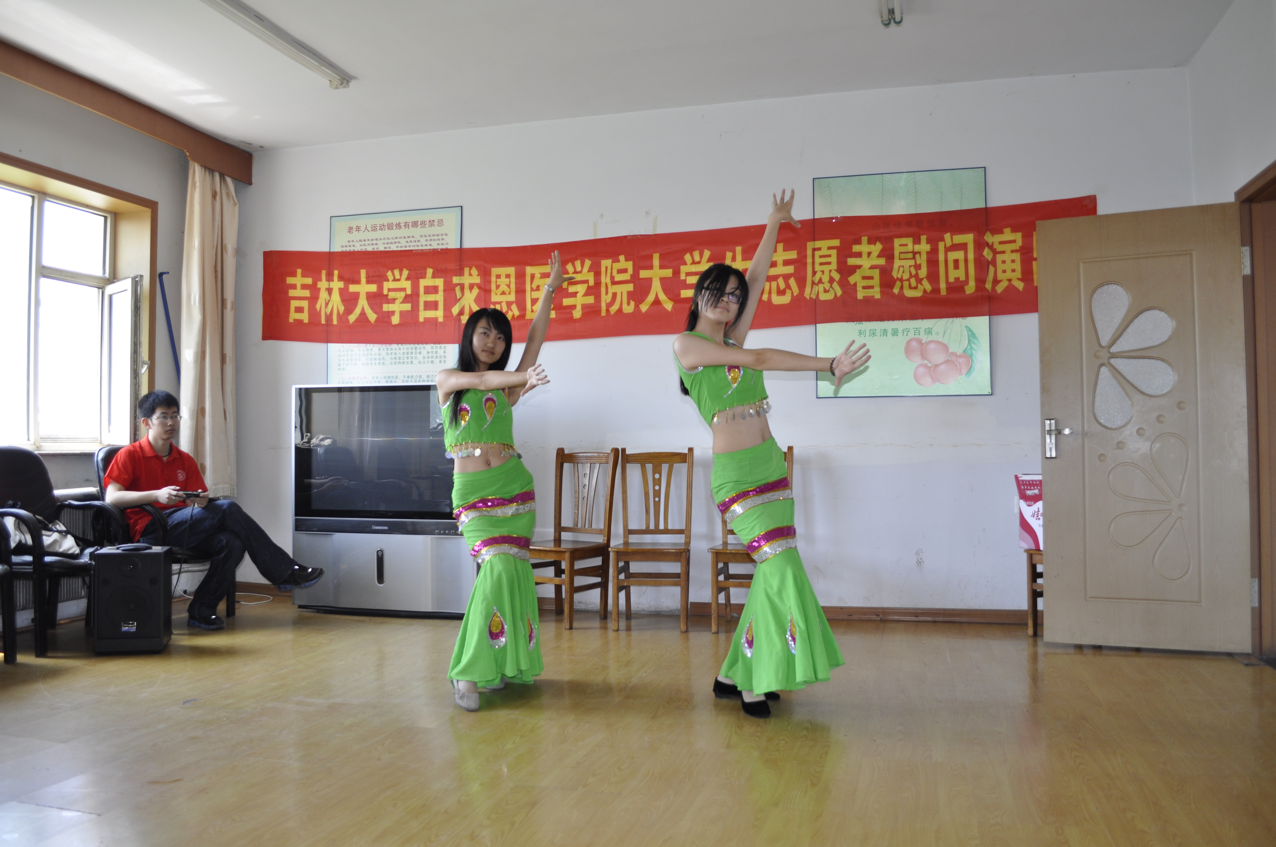 大学生志愿者分成两个小分队分别在乐山镇社会福利服务中心和乐山镇中心小学进行了志愿服务工作。在乐山镇社会福利服务中心,大学生志愿者们为孤寡老人献上了一台精彩的文艺演出,刚柔并济的武术表演、深沉幽远的乐器独奏、悠扬柔美的粤语歌和傣族舞,博得了老人们的声声欢笑和阵阵掌声。同时,志愿者还为老人们提供了医疗服务与咨询,深受老人们的欢迎。在乐山镇中心小学,大学生志愿者们与小朋友一起做起了“命名游戏”。快乐的游戏让小朋友们懂得了梦想的重要价值,增强了他们的团队意识和集体荣誉感。