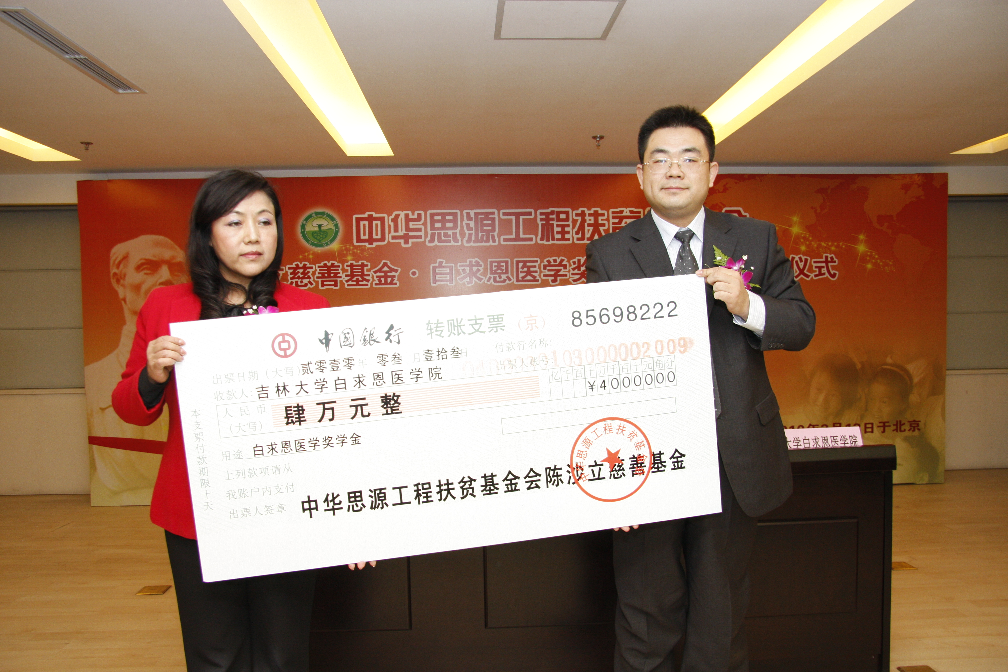 与中华思源工程扶贫基金会·陈沙立慈善基金签订了《“白求恩医学奖学金”项目捐赠协议书》。该奖学金将连续五年资助澳门六合彩资料库