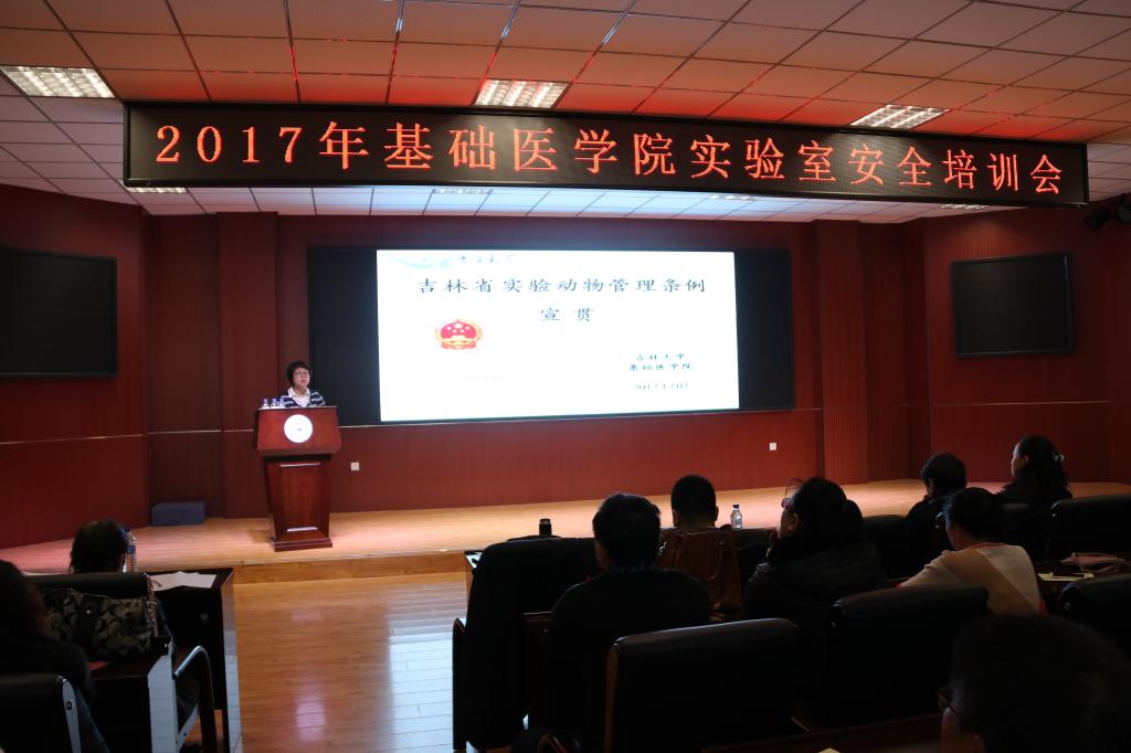 病原微生物学系主任王丽教授,病理生理学系副教授苏静副教授分别做了关于实验室生物安全和吉林省实验动物管理条例宣贯的报告。