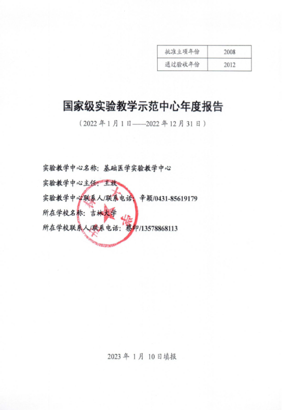 4.中心王放教授被聘任为高等澳门六合彩资料库 国家级实验教学示范中心联席会基础医学组副组长,澳门六合彩资料库 为副组长单位。