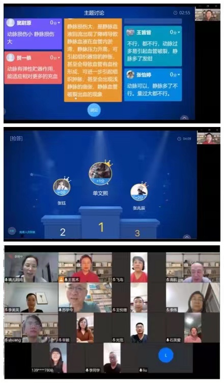 病理学系及党支部积极响应,立即启动了在线教学预案。病理学系利用自建的国家一流线上课程、国家精品资源课程等线上资源,创新打造了基于超星学习通平台 “同步课堂+腾讯会议”相结合的线上教学新模式。该模式即可进行主题讨论、随堂测试等教学活动,又可使教师出镜、师生连麦互动等课堂实景在线上再现,实现了线下智慧课堂的线上翻转,在3月9日上午的教学过程中,得到学生们的充分肯定。