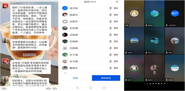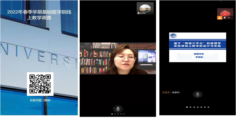 汇总了教师对于线上教学的需求与建议,并针对线上教学平台如何的熟练的综合运用,线上教学的课堂设计等共性问题,于3月17日、3月21日和3月22日,分别在云端组织了理论课、实习课线上教学观摩和线上教学交流培训活动,让老师们体会了利用腾讯会议+同步课堂+虚拟资源三平台的有机结合,及设计抢答、问答、学生展示等多项互动活动,打造的良好线上教学效果。此次观摩结合培训的教学活动,促进了基础医学线上教学从有序开展到高质量的提升。