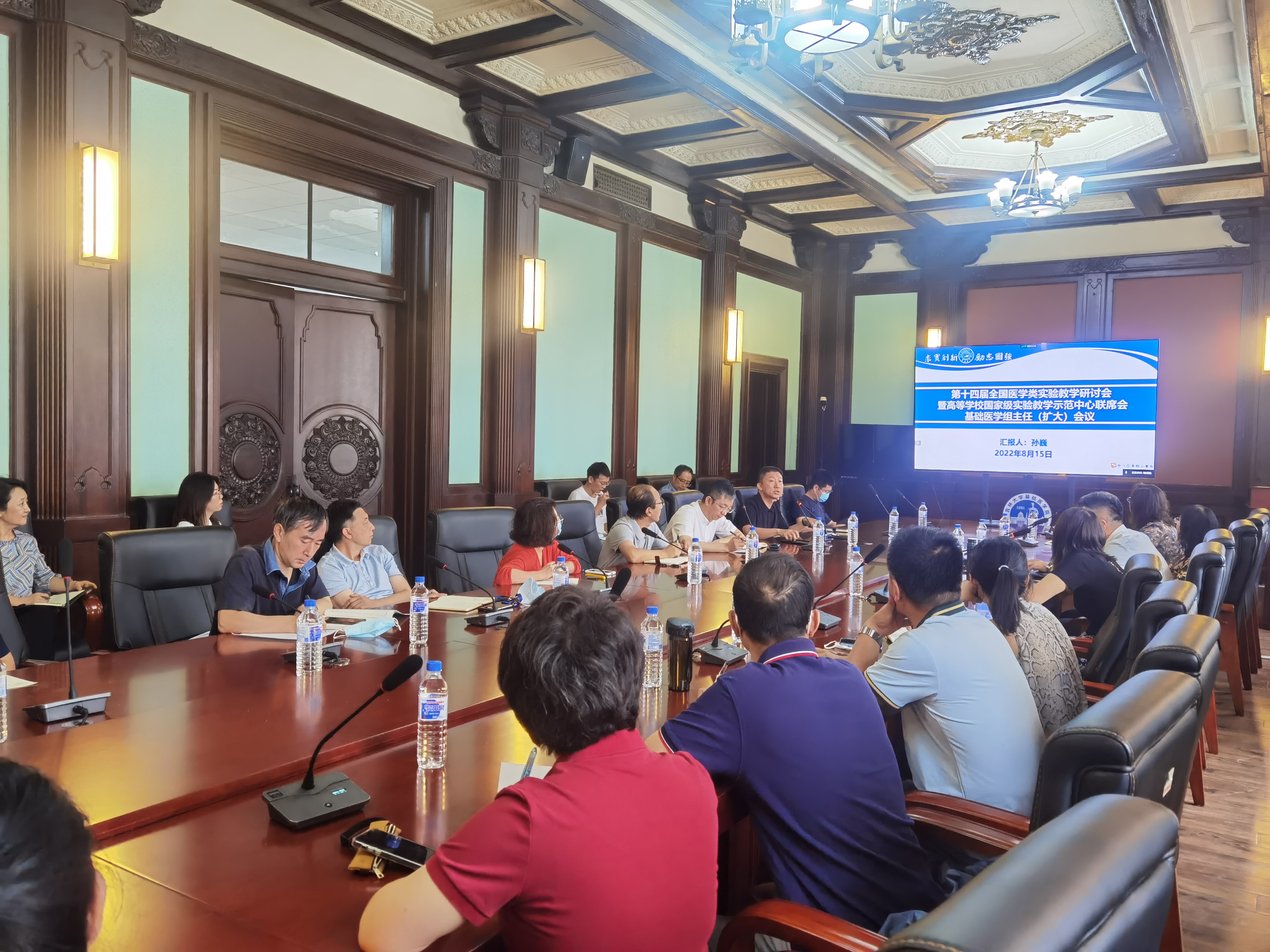 国家级实验教学示范中心联席会基础医学组主任(扩大)会议”参会的心得体会进行了汇报。孙巍教授以遵义医科大学的“基于虚拟仿真的医学仿真的实验室安全课程设计与应用实践”为例,指出当前的实验内容需要更新,同时要做到理论教学和虚拟教学的有机结合;吴山力主任结合实例分别从“科技进步”和“多学科融合”角度探讨实验教学改革方向,分析当前实验教学所面临的问题及解决路径。随后,组织学与胚胎学系主任刘佳梅教授、生理学系主任葛敬岩教授和病理生理学系主任苏静教授分别介绍了本学系实验教学改革情况以及下一步工作计划。王放院长对每位教师的报告进行点评,并提出建议,现场讨论气氛热烈。王放院长还强调了实验创新类大赛对于师生的重要性,下一步将加强此类活动的宣传工作,鼓励师生积极参与,提高教学成果的应用和辐射作用。