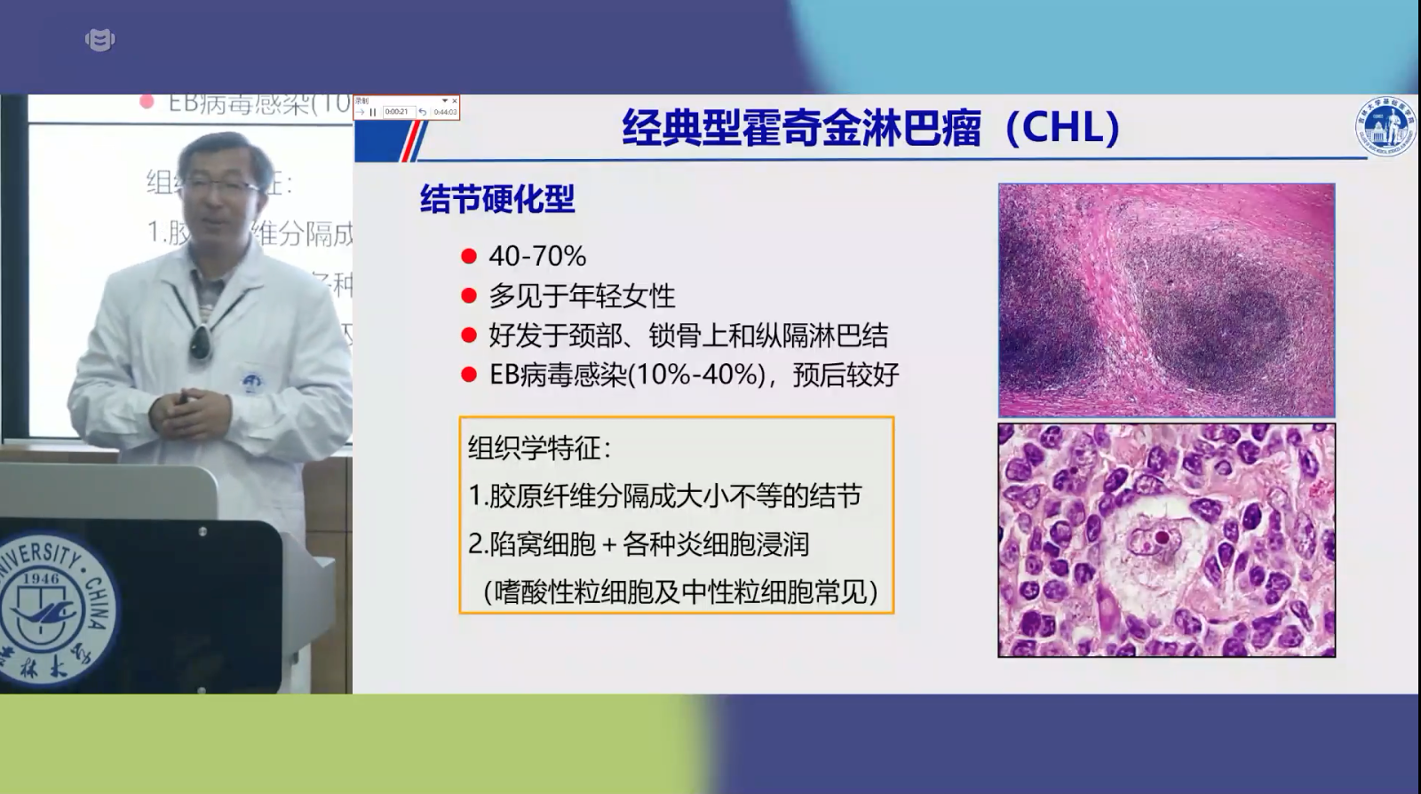 病理学系王悦增副教授主讲,主题为淋巴造血系统疾病,包括淋巴结的良性病变、淋巴组织肿瘤、髓系肿瘤和组织细胞和树突状细胞肿瘤等内容。课堂上,结合临床案例、病理图片、思维导图对典型疾病进行深入剖析,使学生们对淋巴造血系统疾病有了更加全面和深入的认识。与学生积极互动同时,结合随堂练习,帮助同学们及时巩固本次课的学习成果,内蒙古民族大学的同学们积极互动,课堂氛围十分活跃。