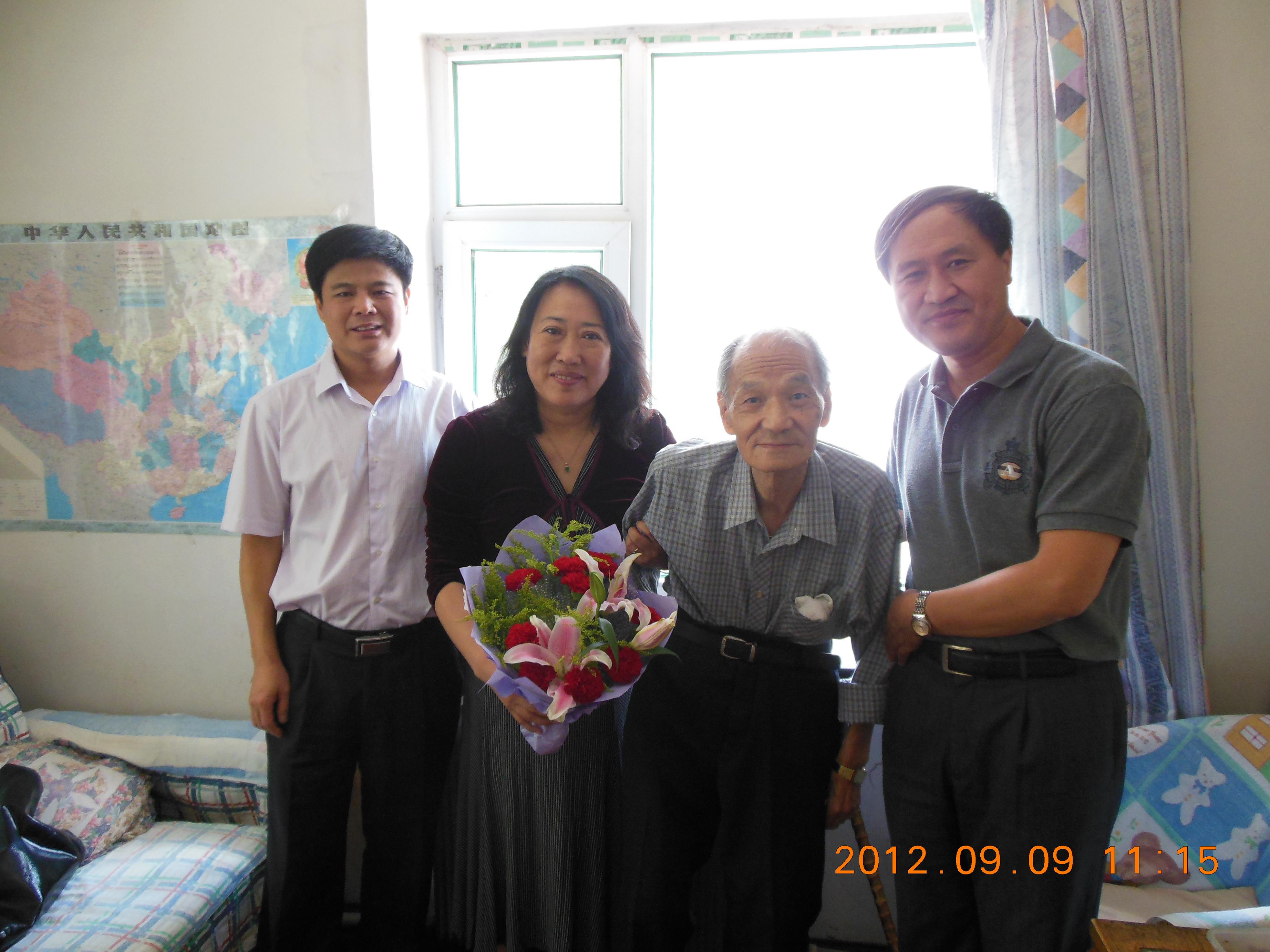 向两位老教授敬献鲜花,并致以诚挚的节日问候。