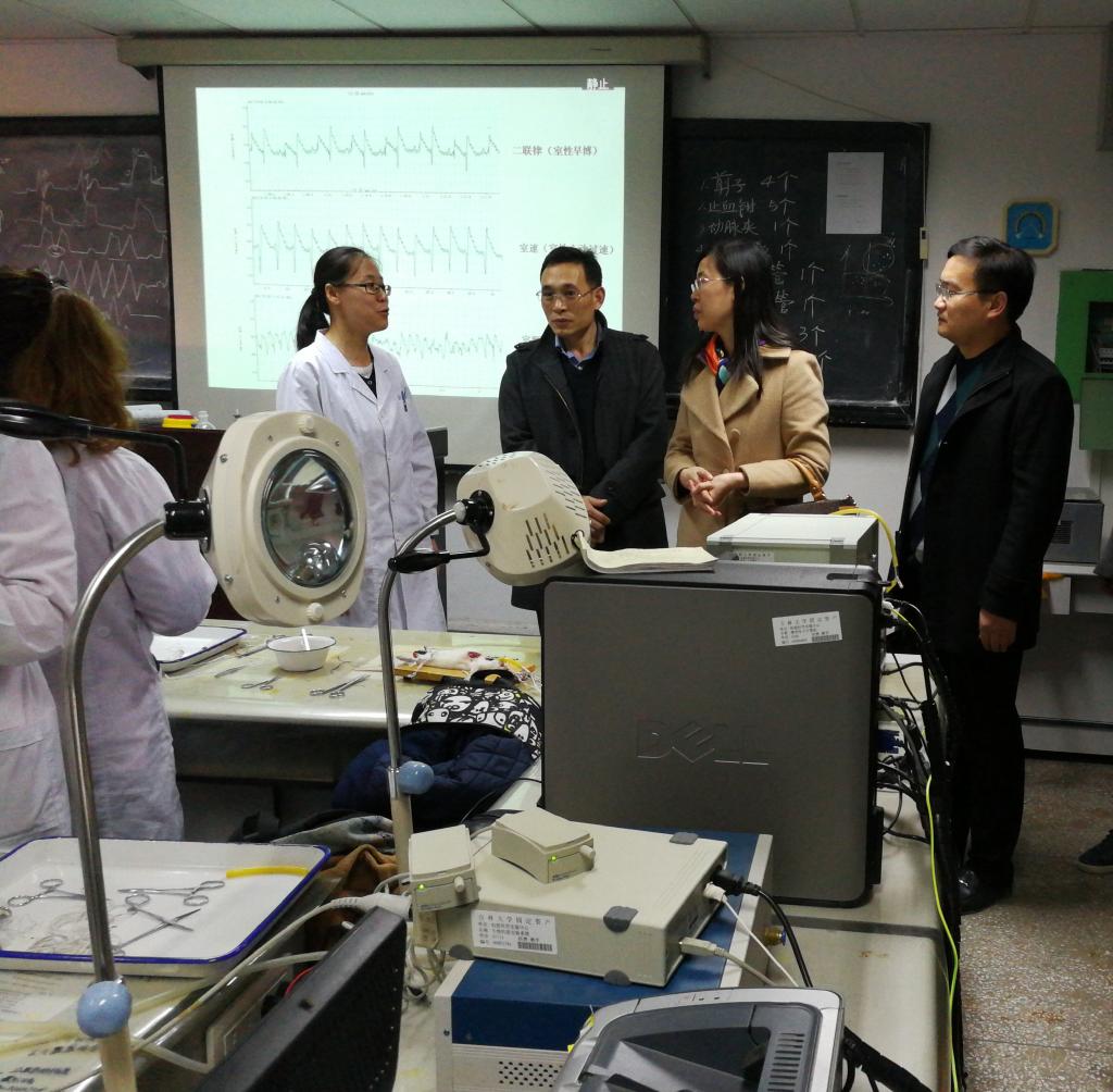 领导与教师参观了国家级基础医学实验教学示范中心,并就实验课教学及管理体制进行了现场交流。