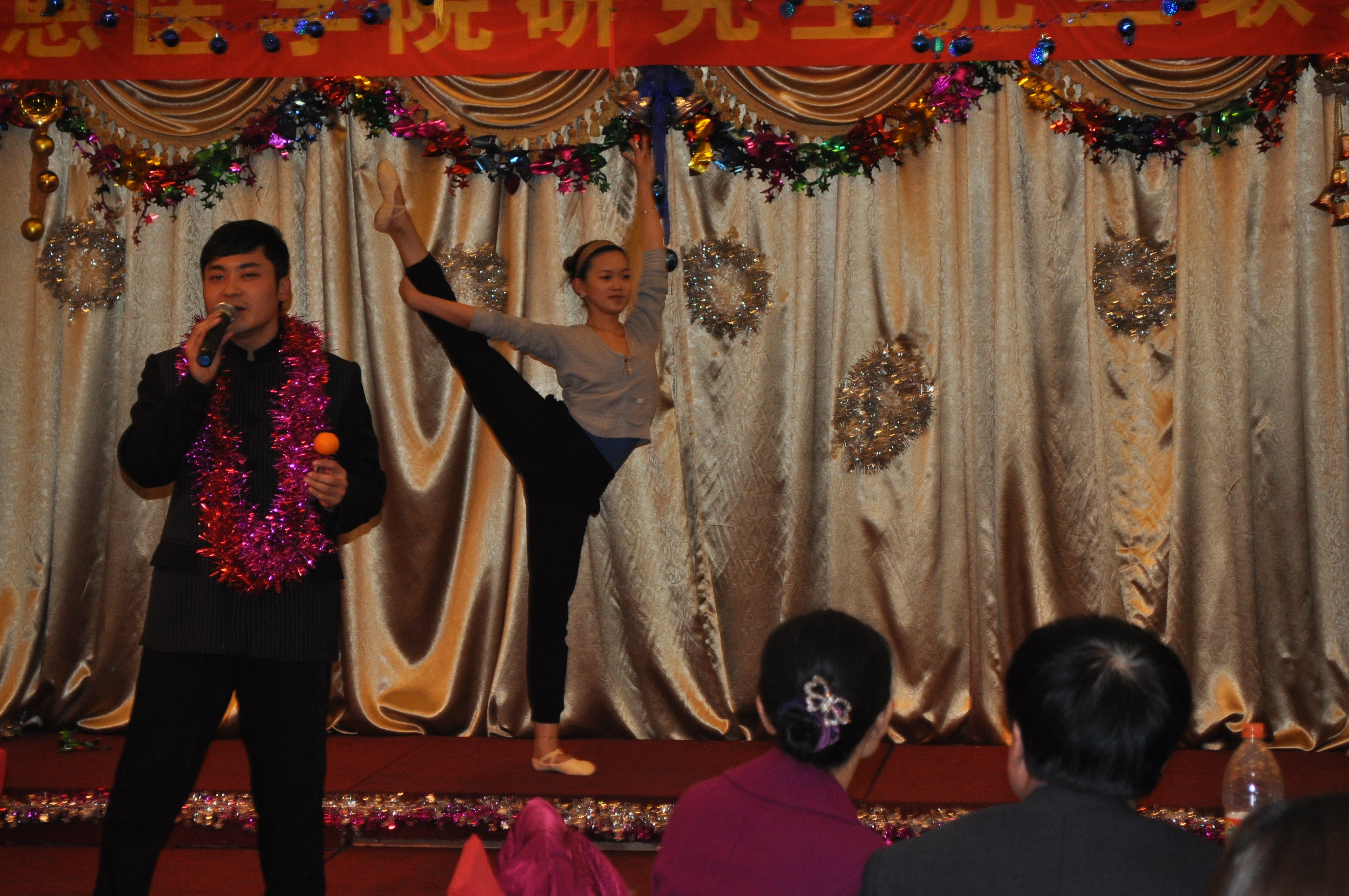 全体领导班子成员和研究生办公室老师及近200名研究生一起参加了晚会。